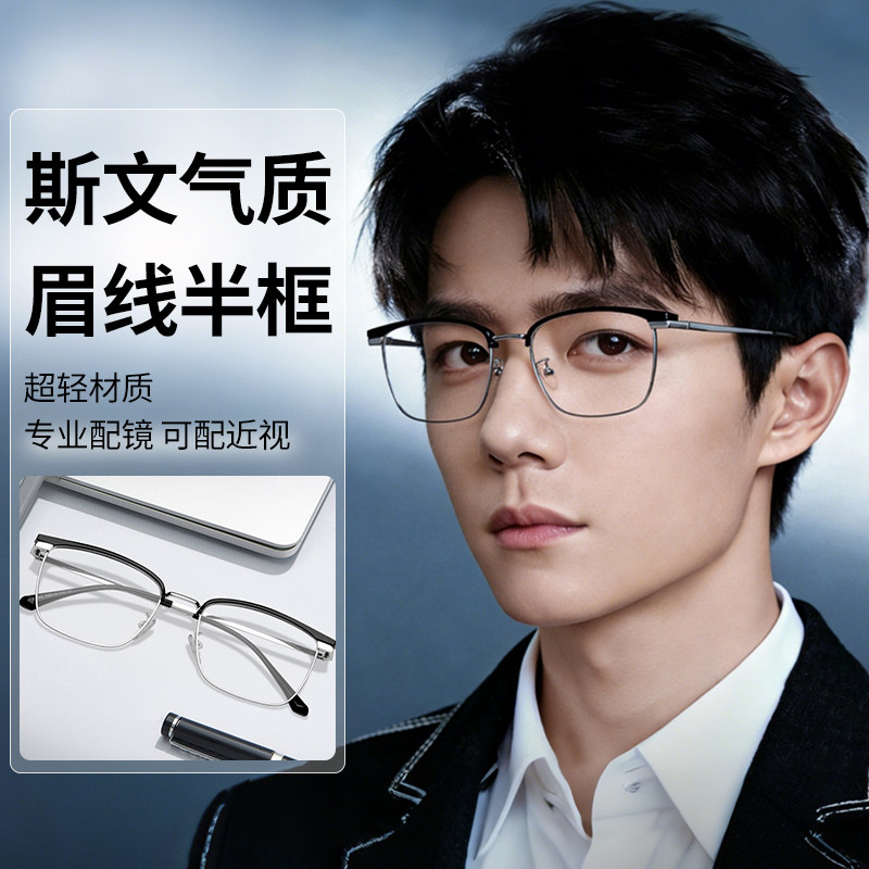 半框近视眼镜框男款潮网上可配度数散光镜片防蓝光大脸眼睛架变色