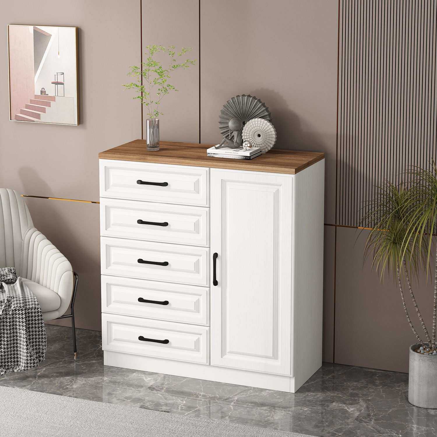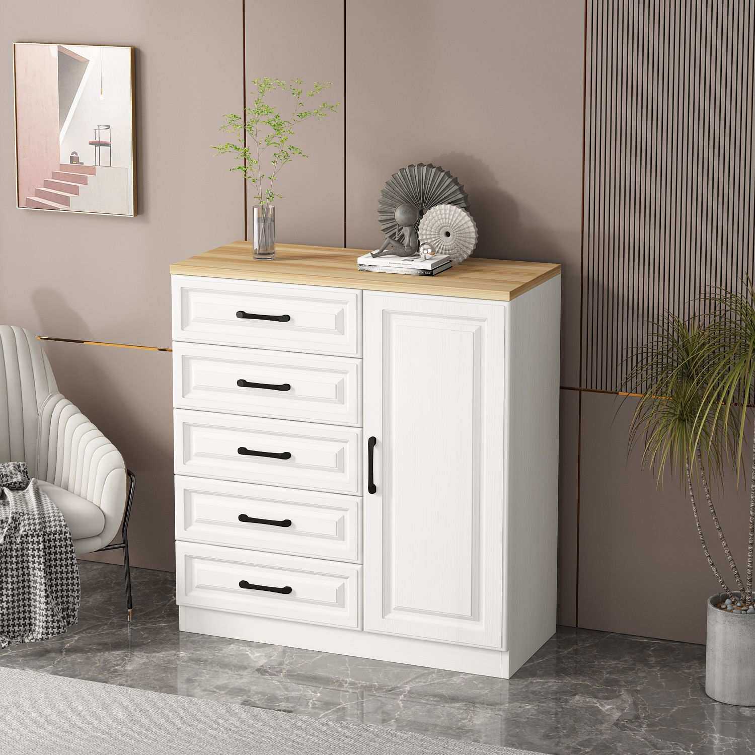 五斗柜实木欧式现代收纳柜简约客厅卧室储物柜子带抽屉六斗橱跨境