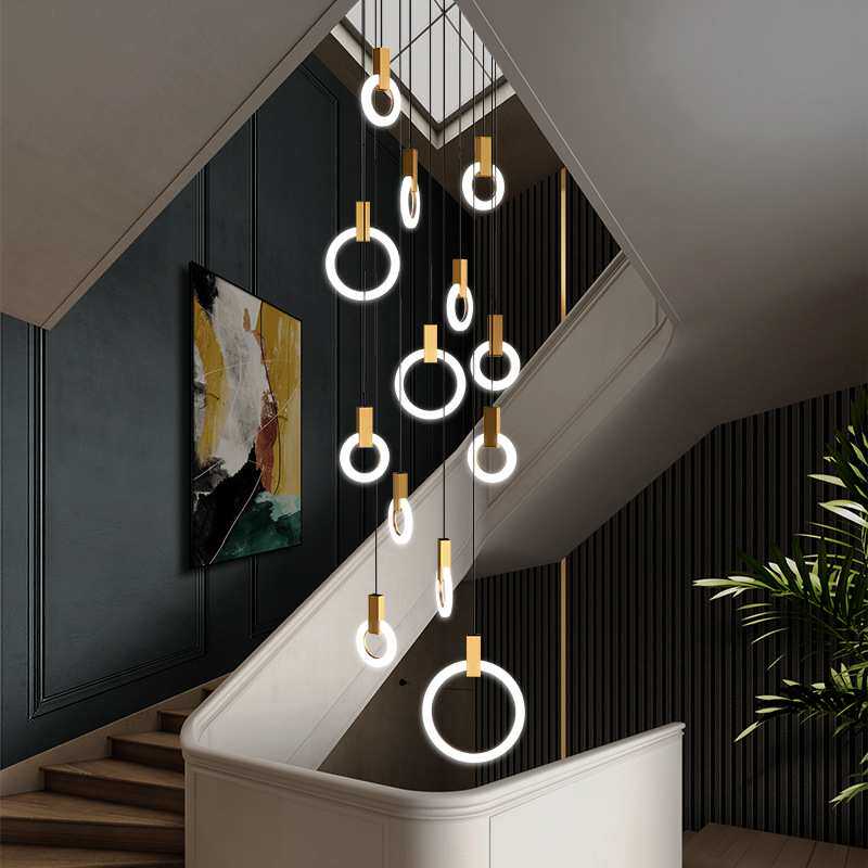 复式楼梯灯北欧简约后现代个性公寓别墅客厅吊灯旋转楼梯间长吊灯
