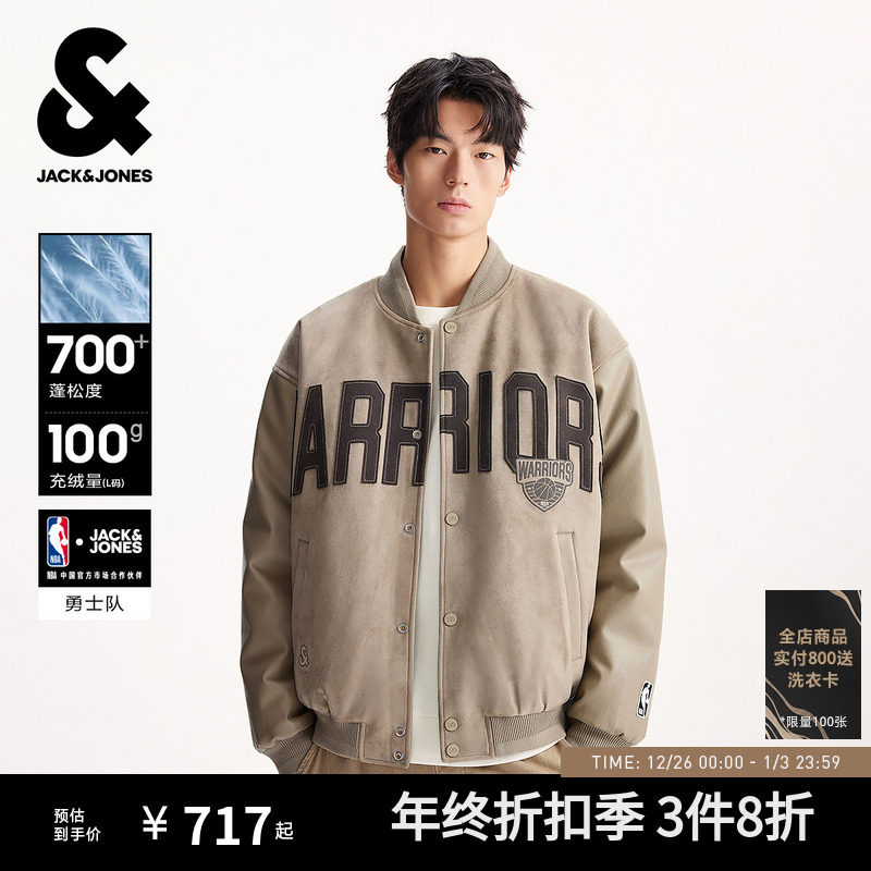 【颜值轻暖羽绒服】杰克琼斯NBA联名男装冬宽松麂皮绒百搭外套