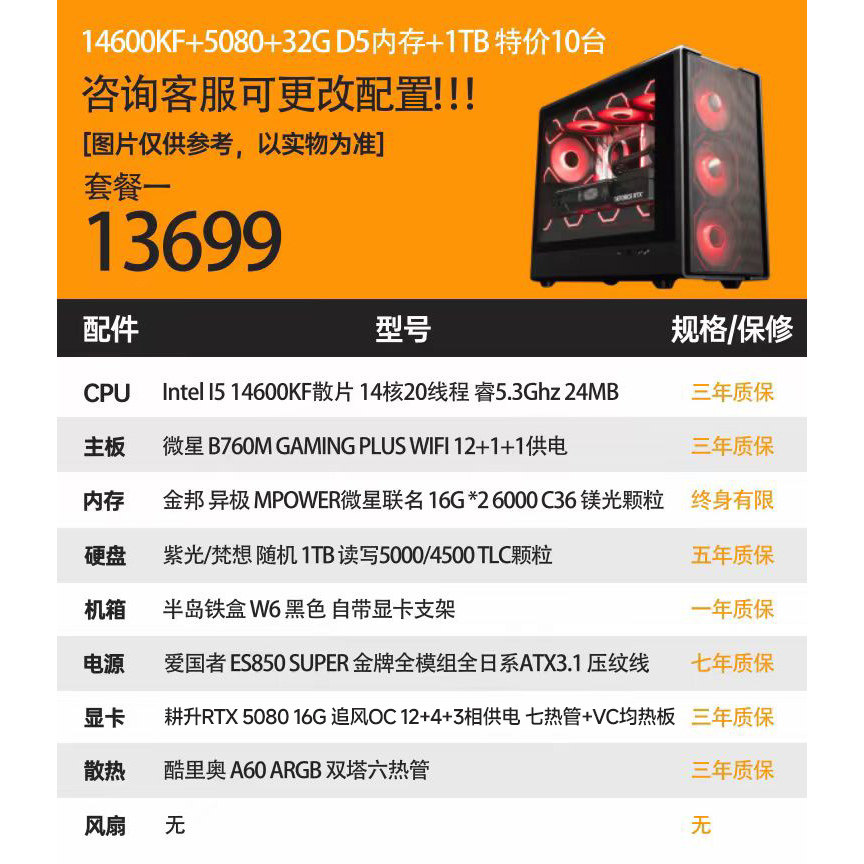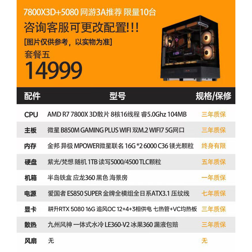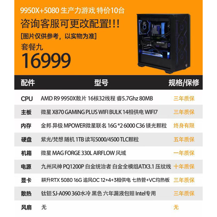 硬件动力丨RTX5080 16G/5090D显卡特价电竞diy游戏电脑主机98X3D