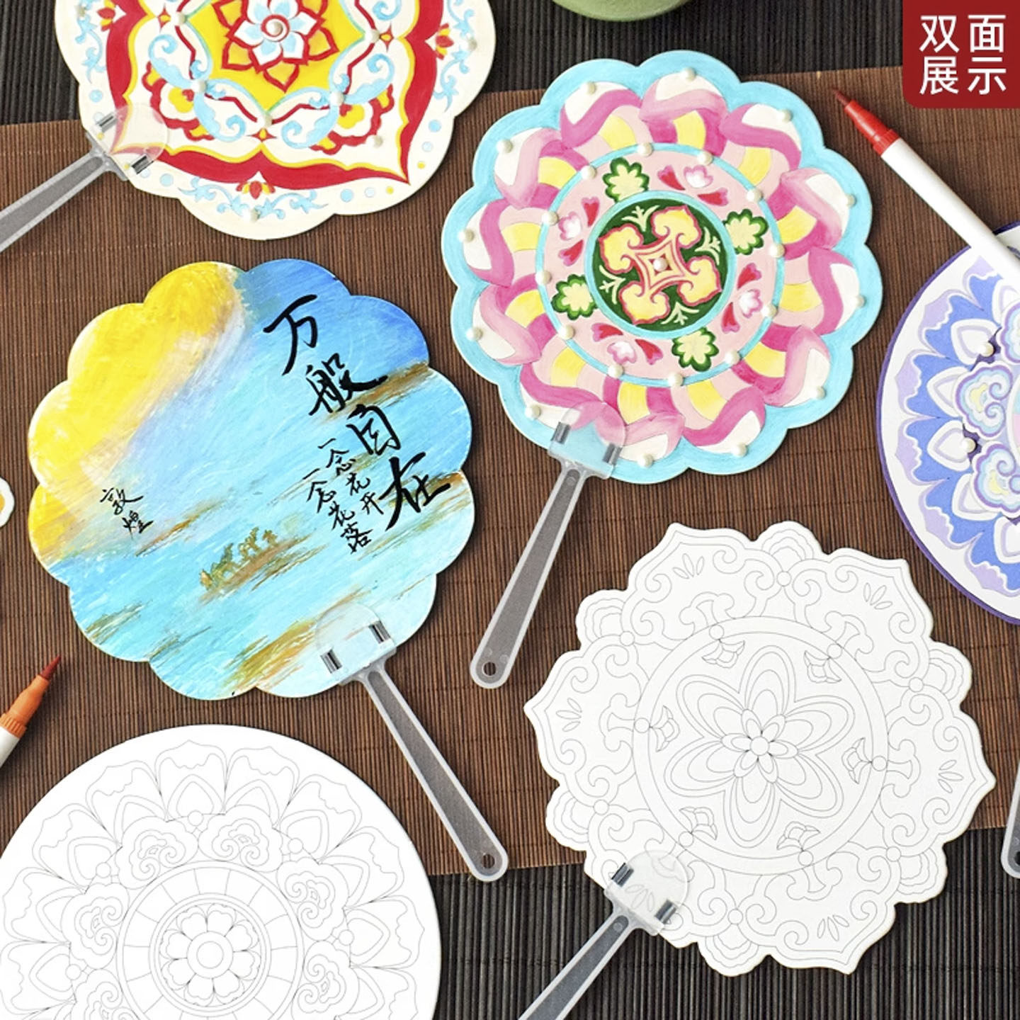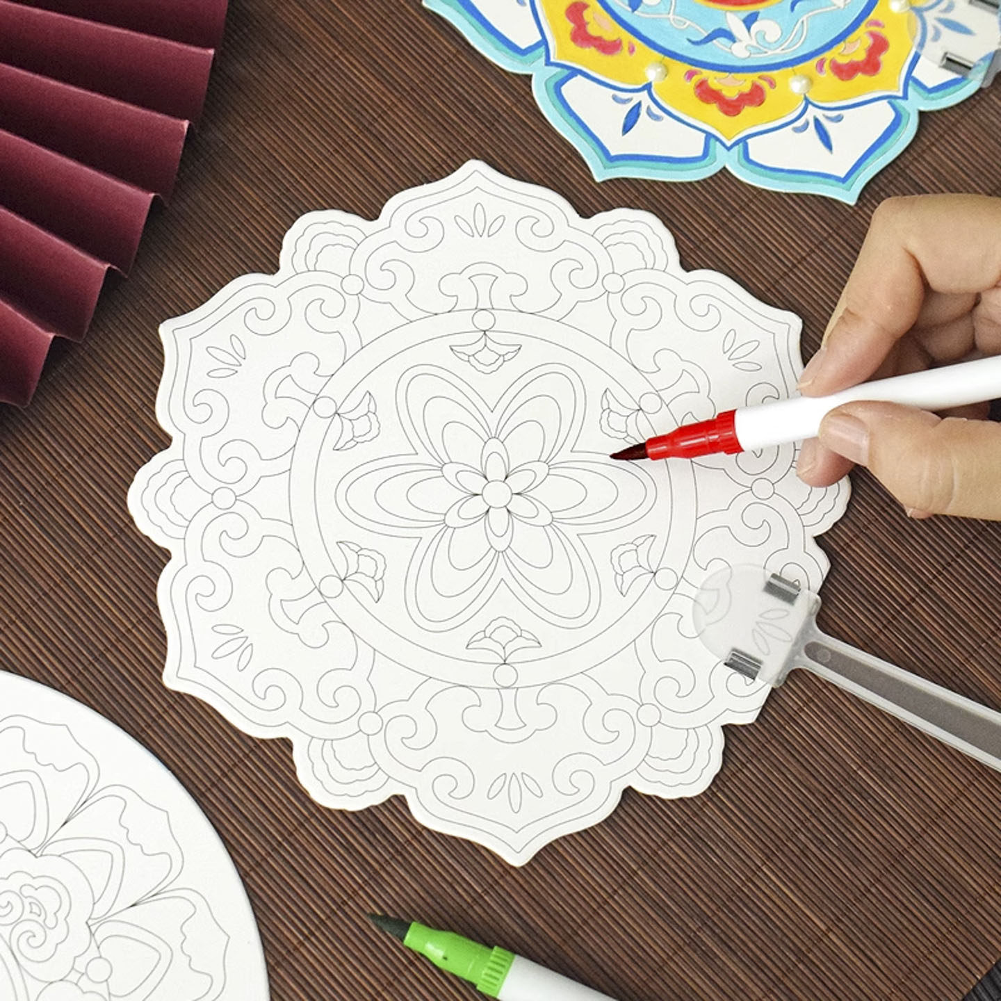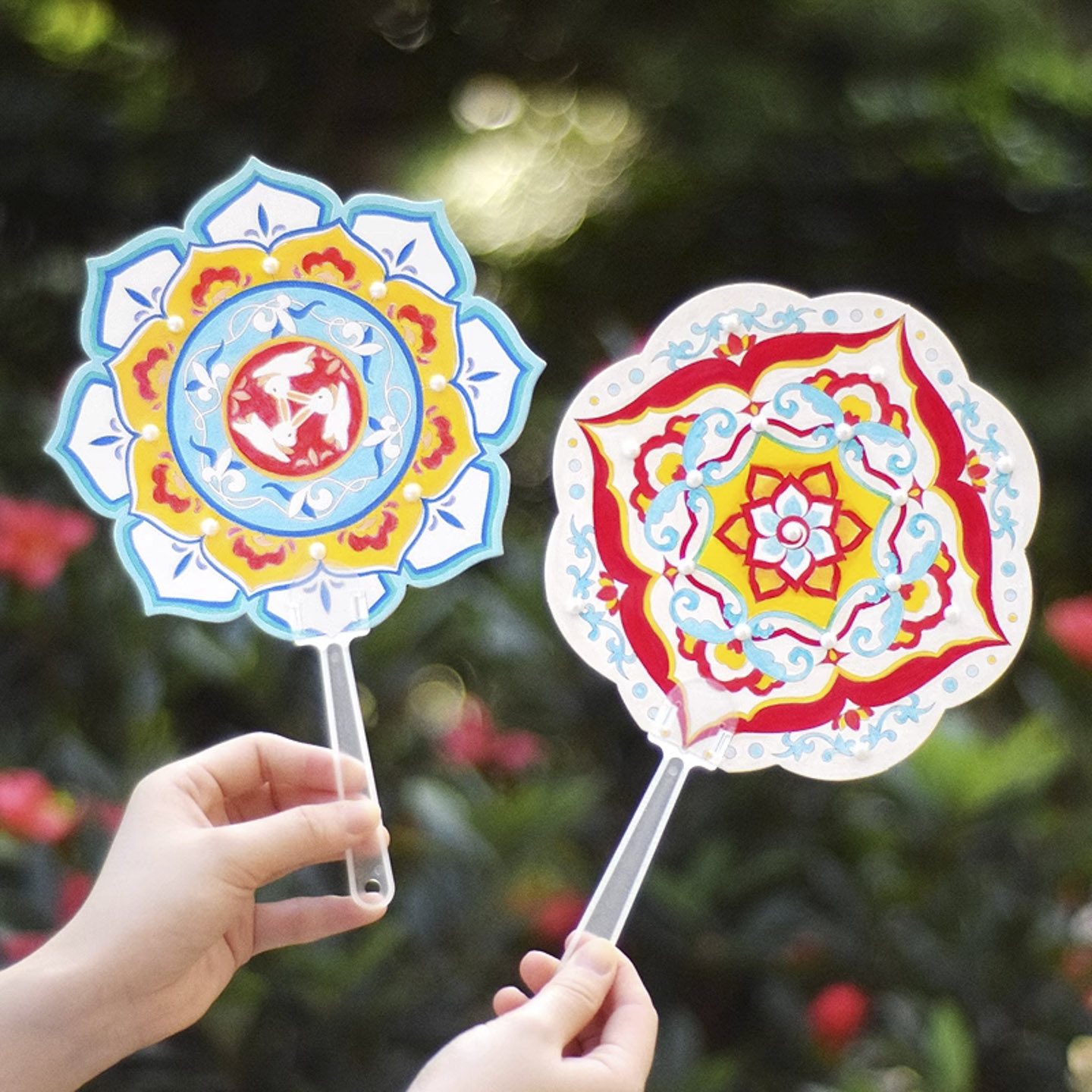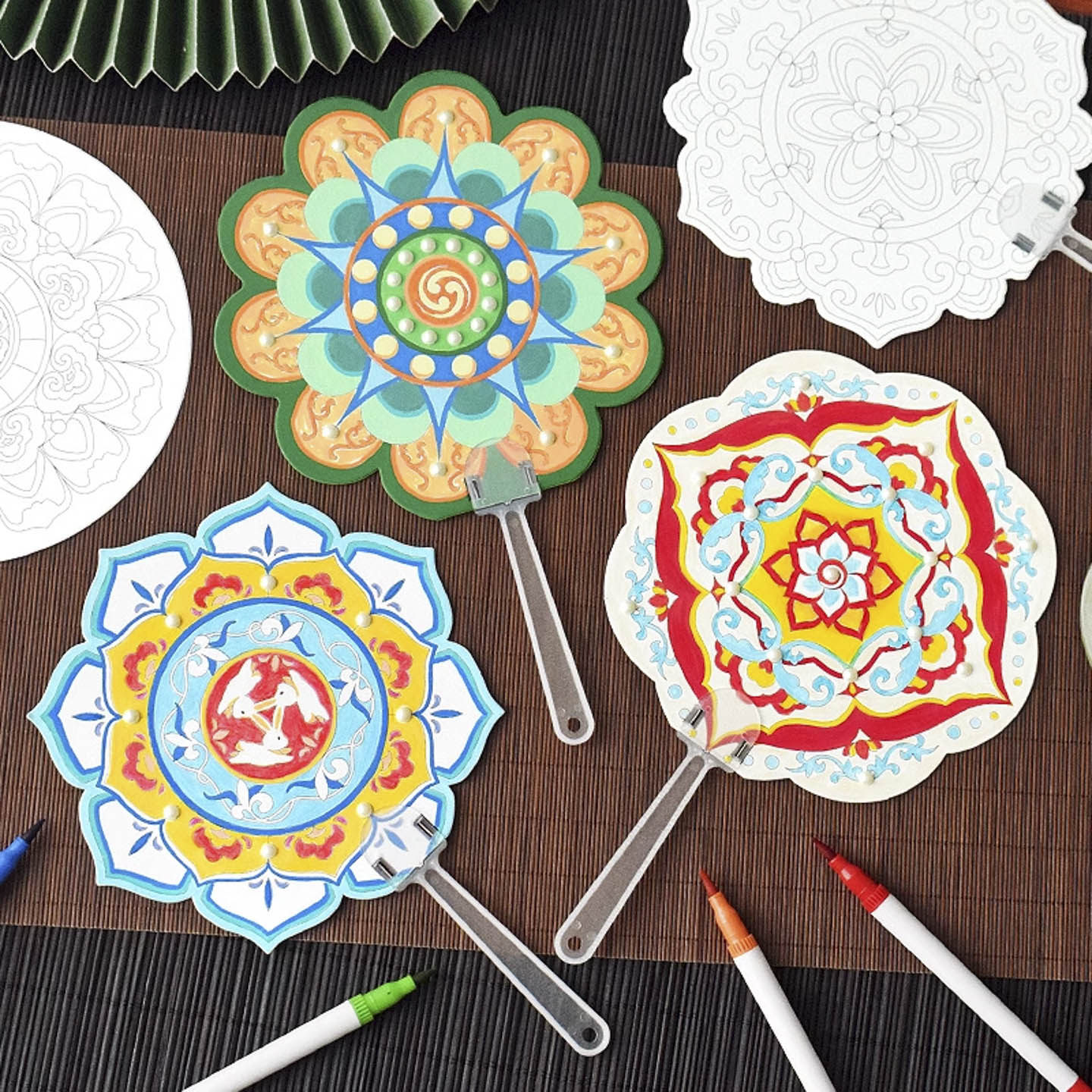 文创手工diy古风扇子贺卡创意儿童小学生美术制作过新年中国风非遗传统文化敦煌澡井图案涂色线稿团扇材料包