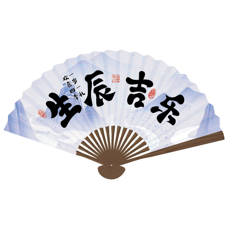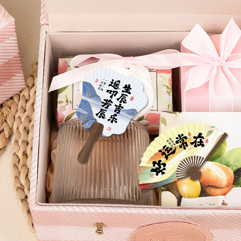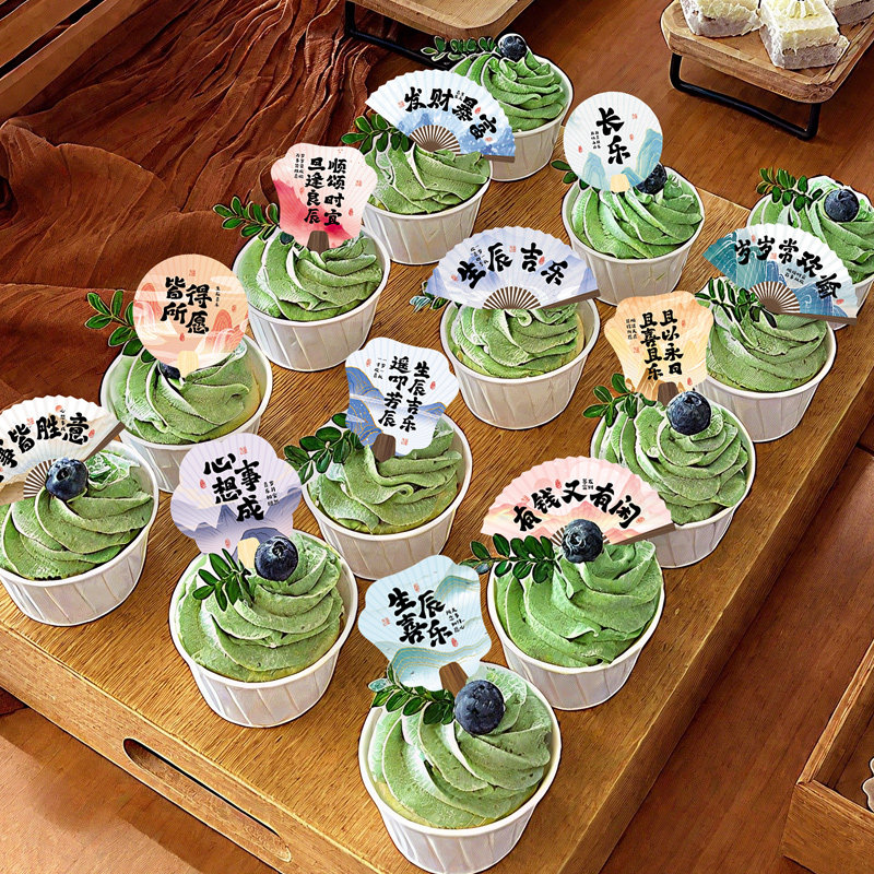 中国风迷你小扇子装饰插卡蛋糕点心礼盒小插牌创意国潮小卡片节日生日喜庆开运生辰喜乐励志书法文字复古团扇
