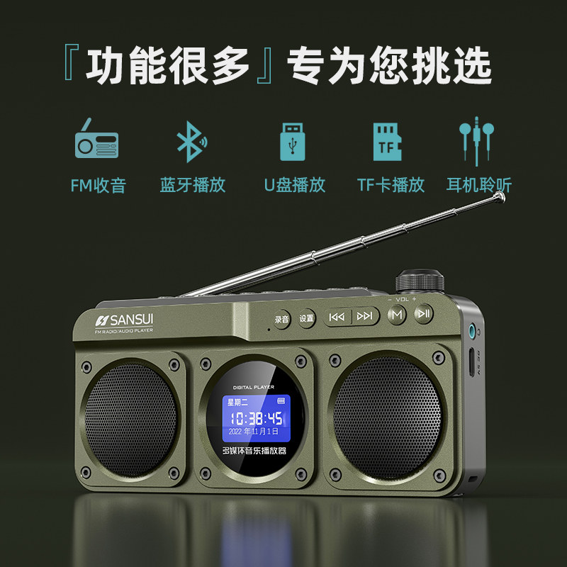 山水F28可插卡FM收音机双喇叭录音机数字选歌立体声蓝牙便携音响