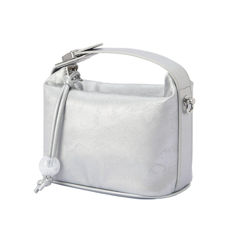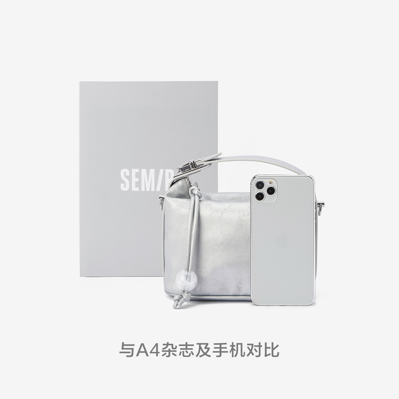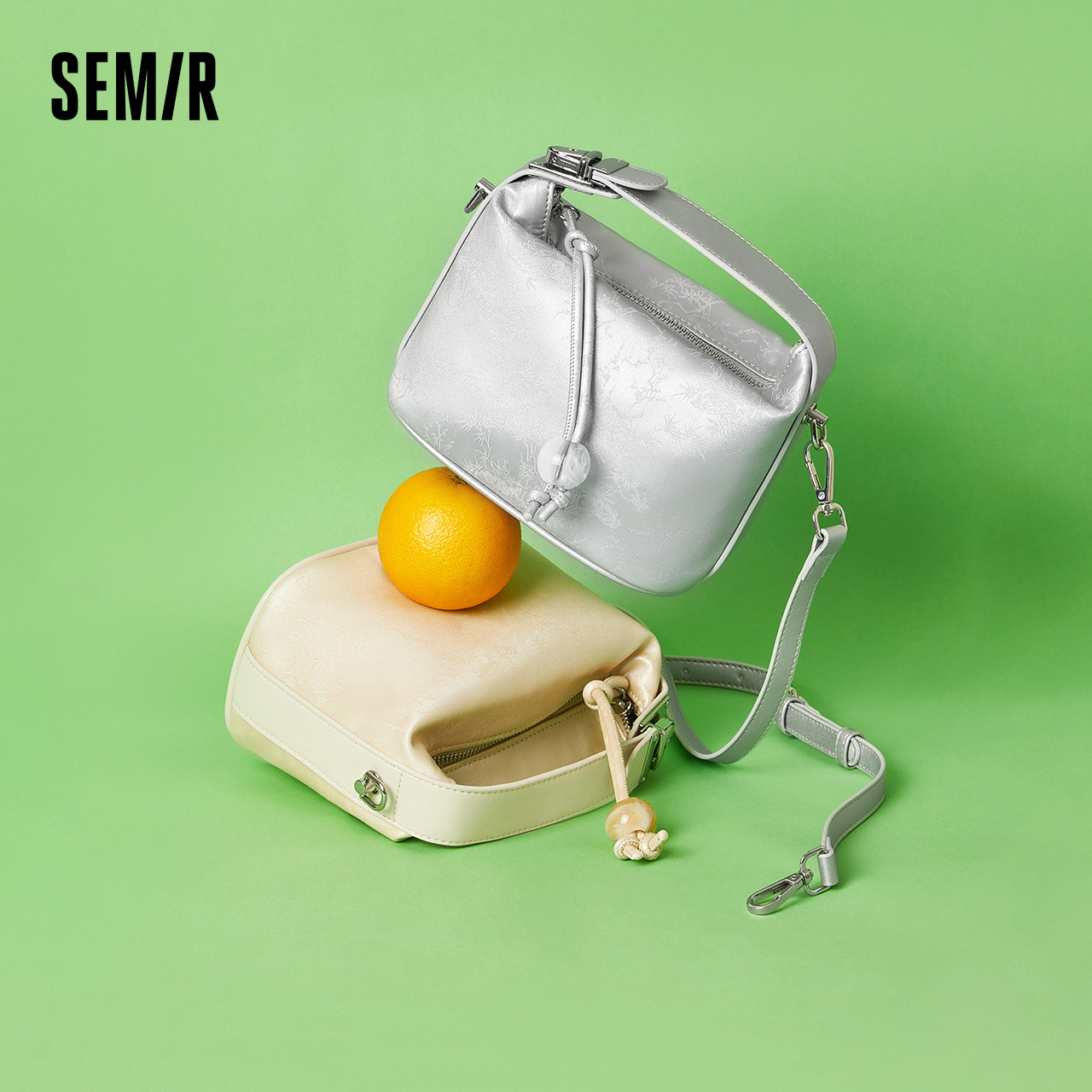 森马包包手提包女盒子包国风饺子包新中式串珠银色包包枕头斜挎包