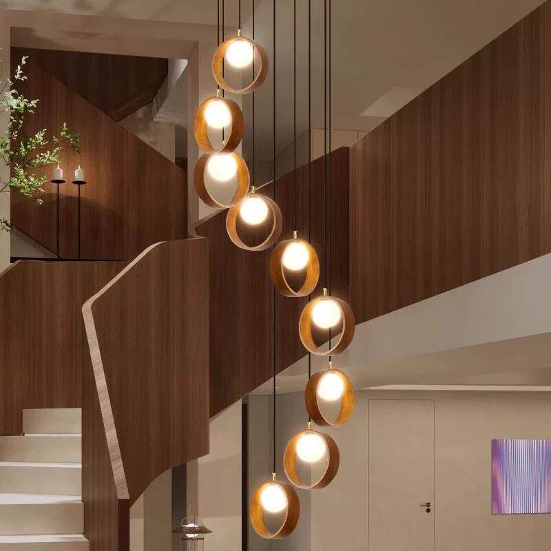 实木楼梯吊灯别墅复式自建房客厅大厅餐厅中国风挑空