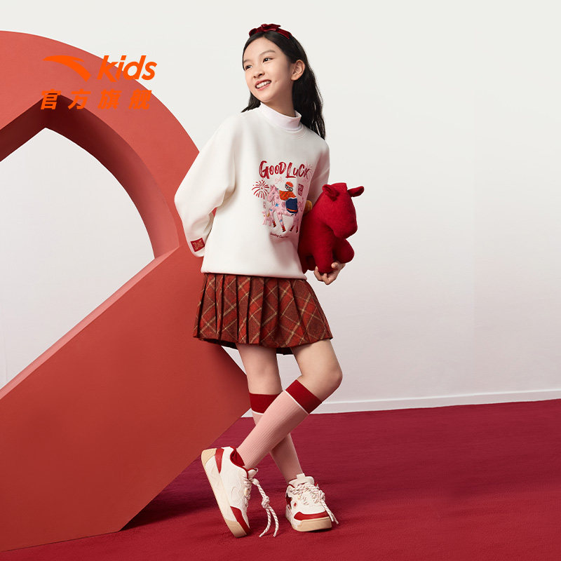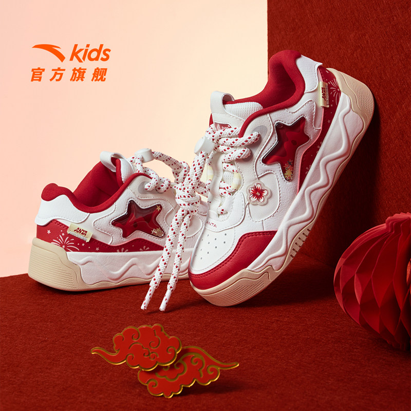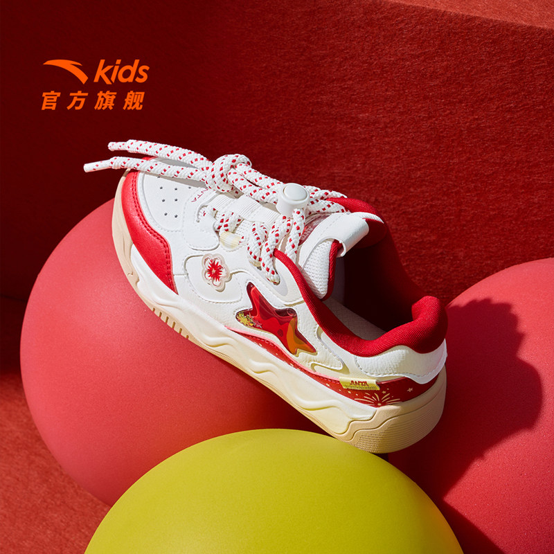 奶昔2丨安踏儿童运动鞋女童鞋26新年限定红色低帮板鞋潮流小白鞋