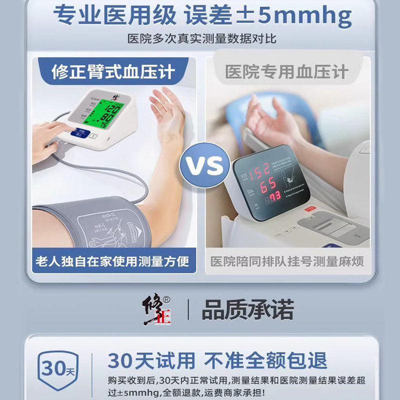 修正医用电子血压计高精准量血压家用臂式医院专用血压测量仪正品