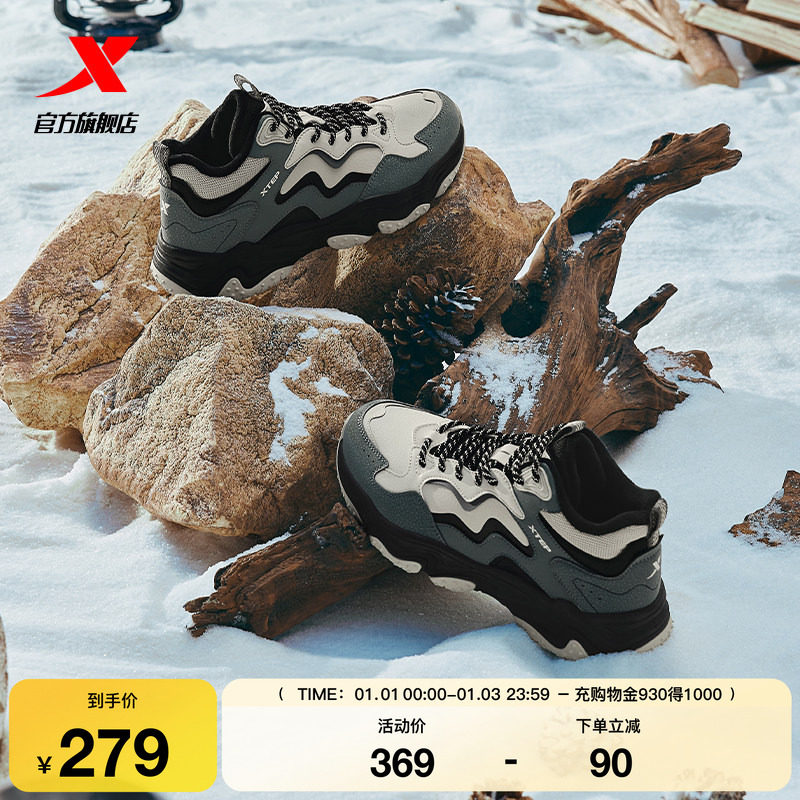 特步火山棉鞋女鞋冬季加绒保暖厚底大棉休闲鞋户外运动鞋男老爹鞋