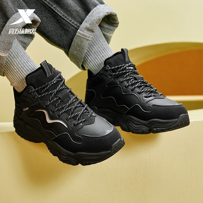 特步星火休闲鞋男鞋冬季革面轻便百搭厚底增高女鞋革网正品运动鞋