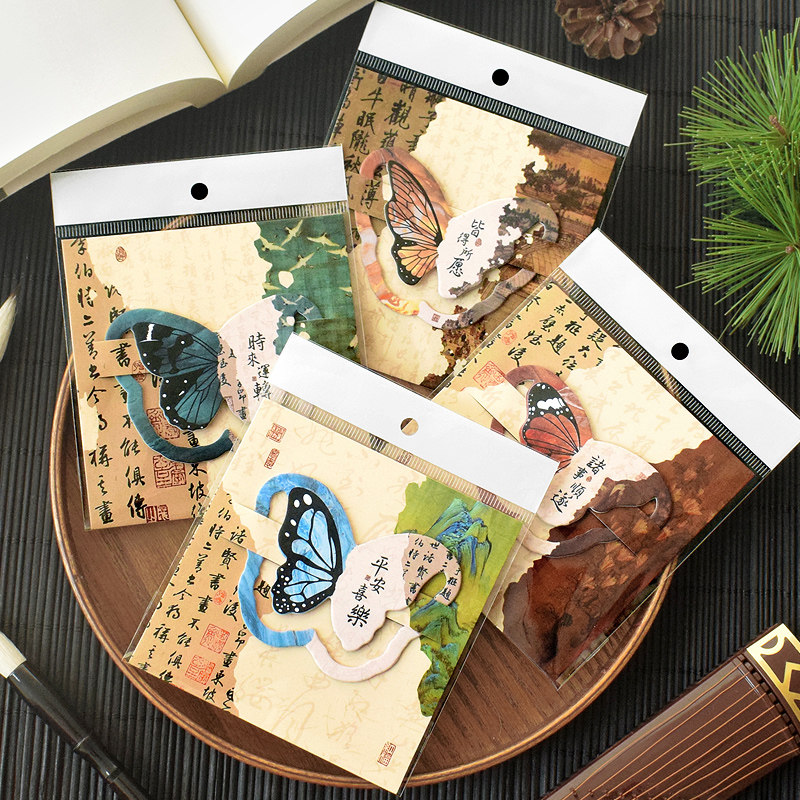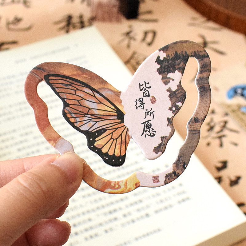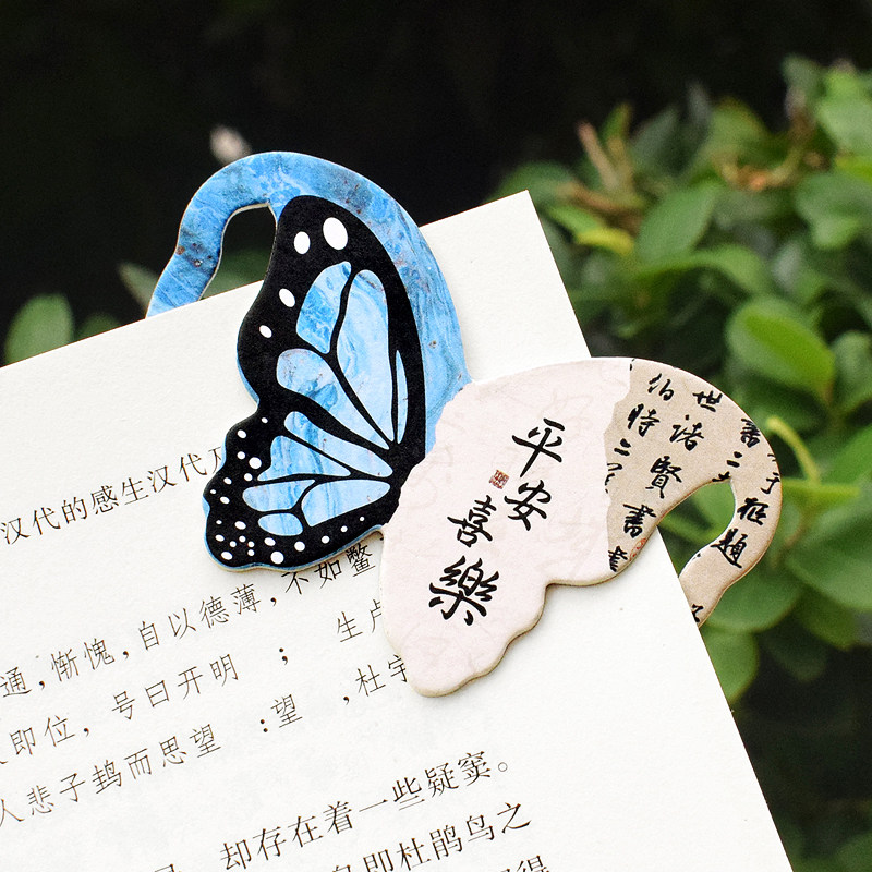 古典中国风蝴蝶书签纸励志文字平安喜乐国潮创意硬卡片文艺青年大学生用复古风环保不伤书高级感高颜值小礼物