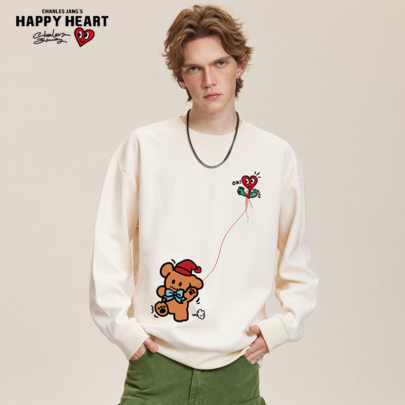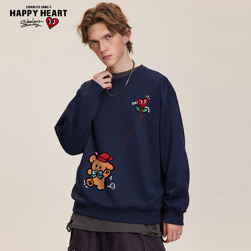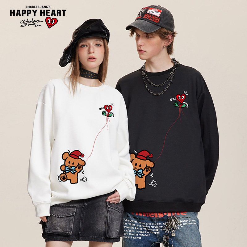 查尔斯桃心 小熊风筝印花美式圆领卫衣男女春秋季宽松落肩袖情侣