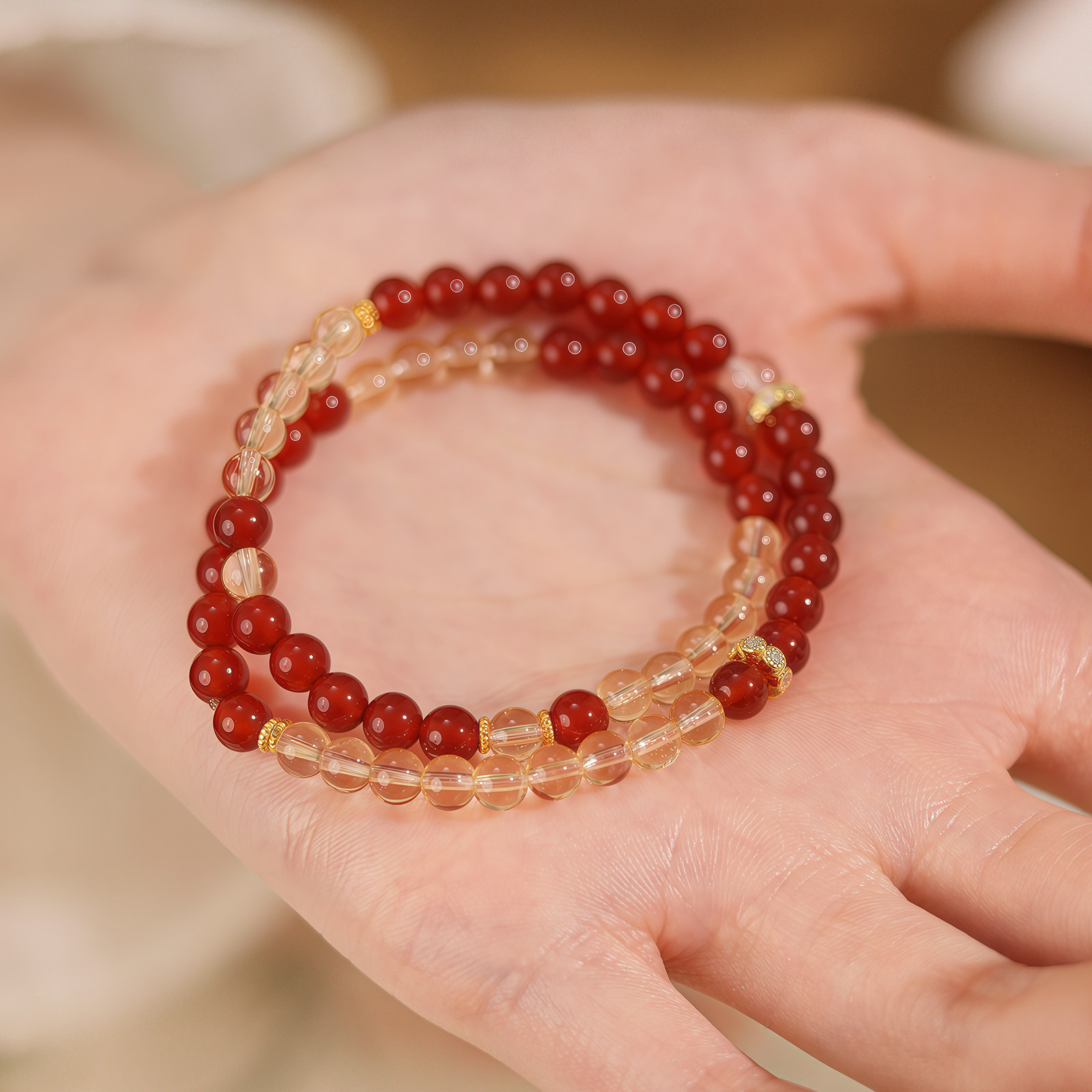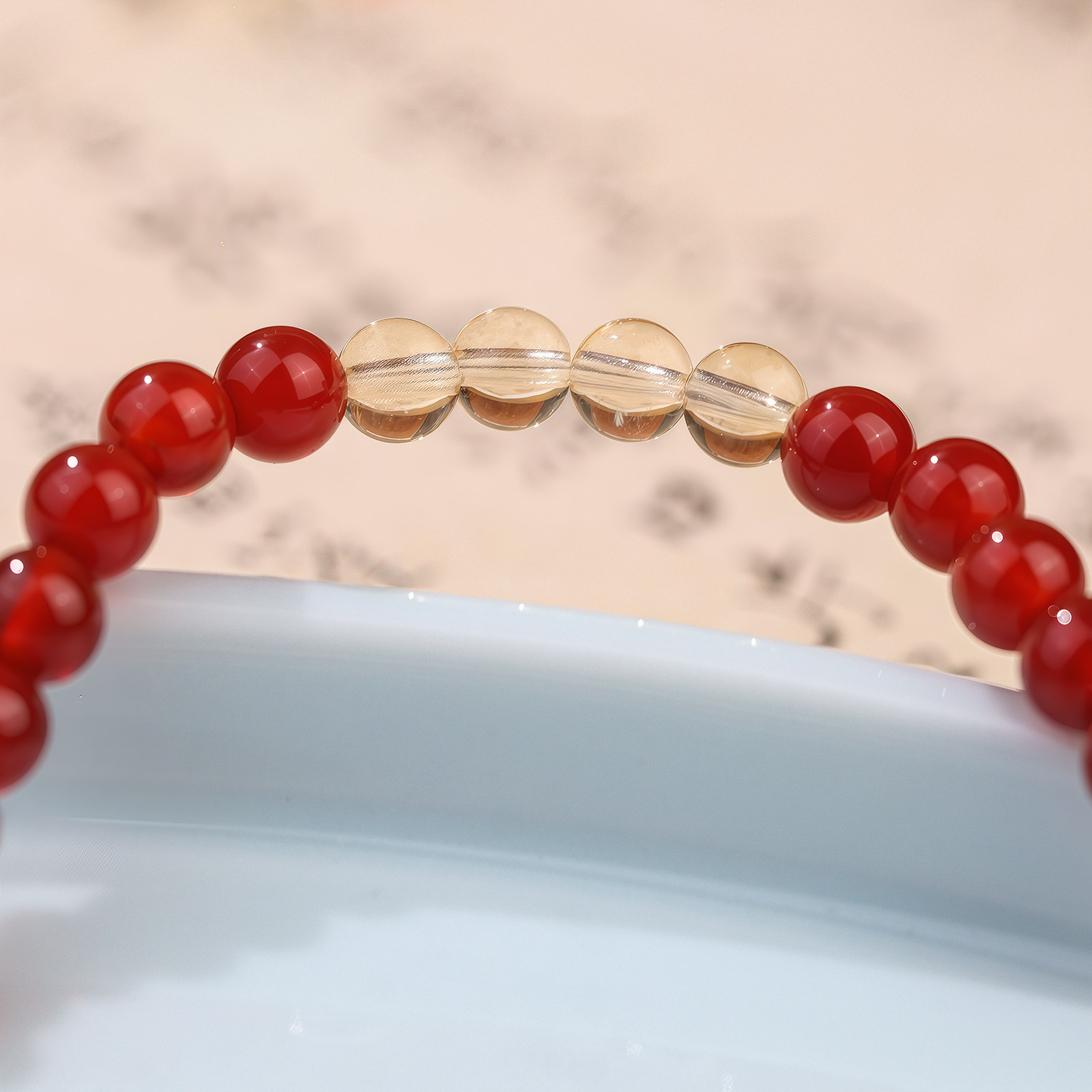 曦霞珠为晚天然黄水晶红玛瑙冷门手串女款白水晶串珠手链小众女生