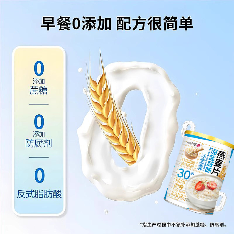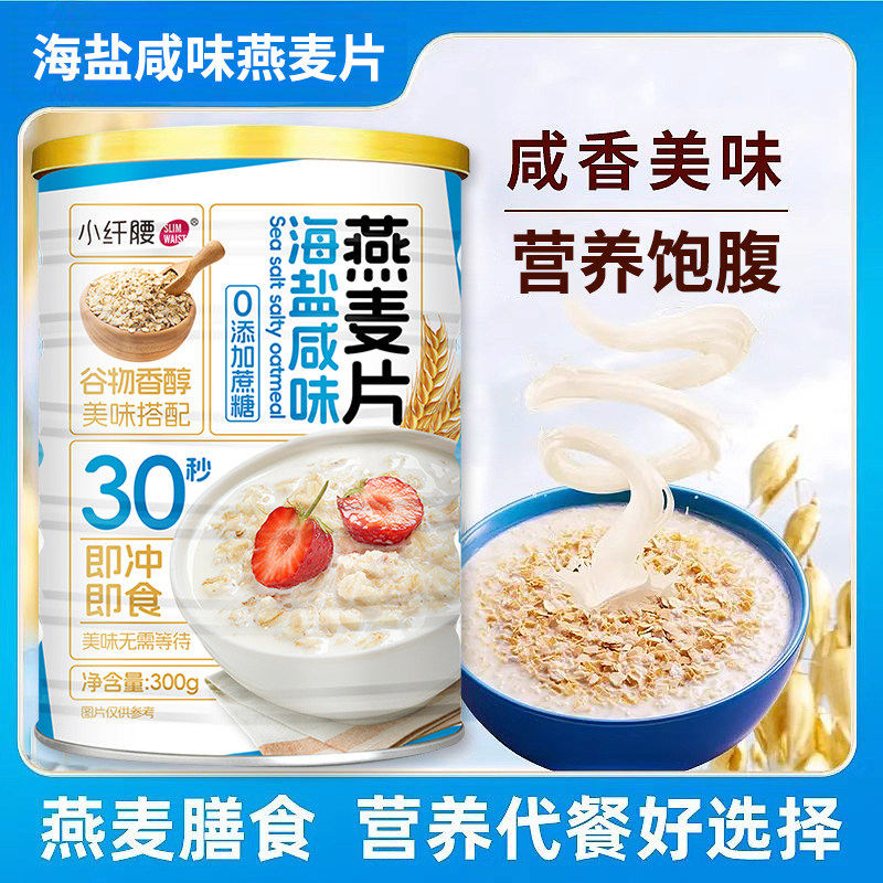 4大罐赠杯勺 海盐咸味燕麦片无添加蔗糖即食冲饮麦片早餐谷物免煮