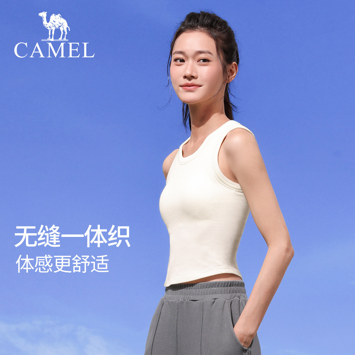 骆驼瑜伽背心女透气跑步运动文胸防震时尚修身百搭健身服训练背心