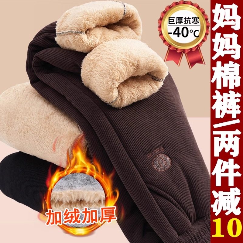 妈妈裤子灯芯绒冬季棉裤加绒加厚保暖裤女中老年人奶奶装外穿长裤
