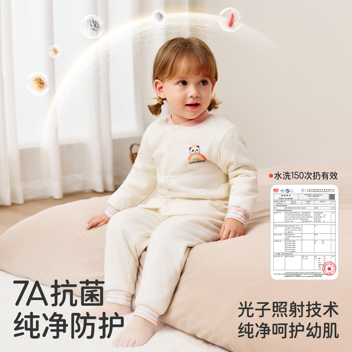 婧麒宝宝套装秋冬款夹棉纯棉a类儿童睡衣高腰护肚保暖家居服恒温