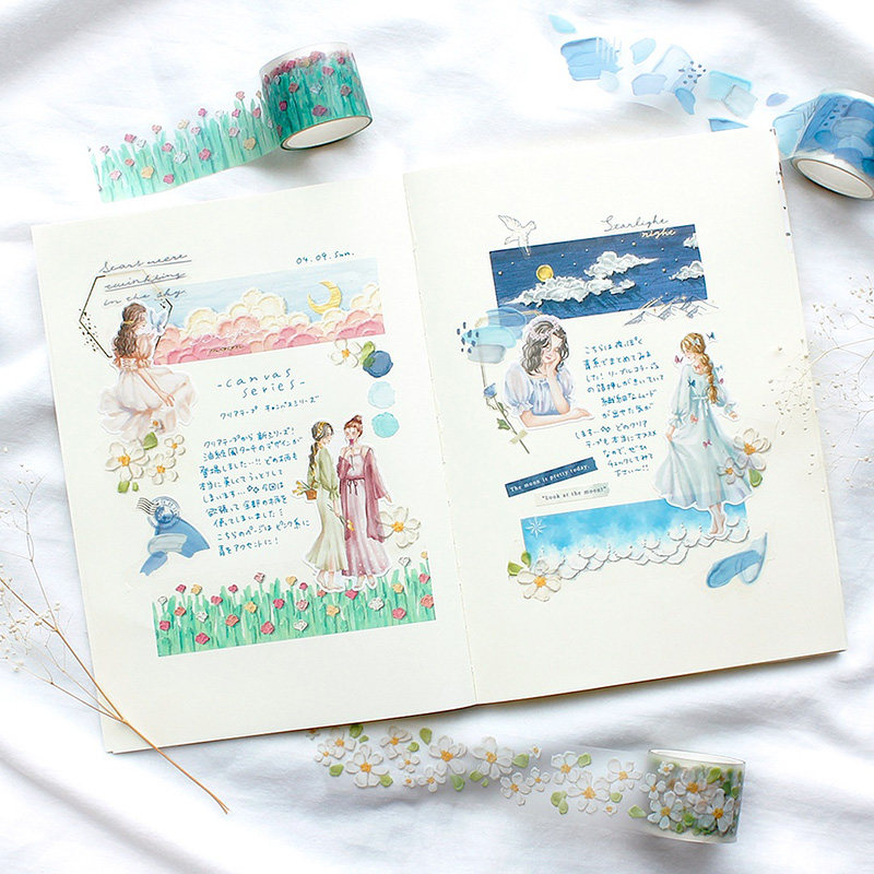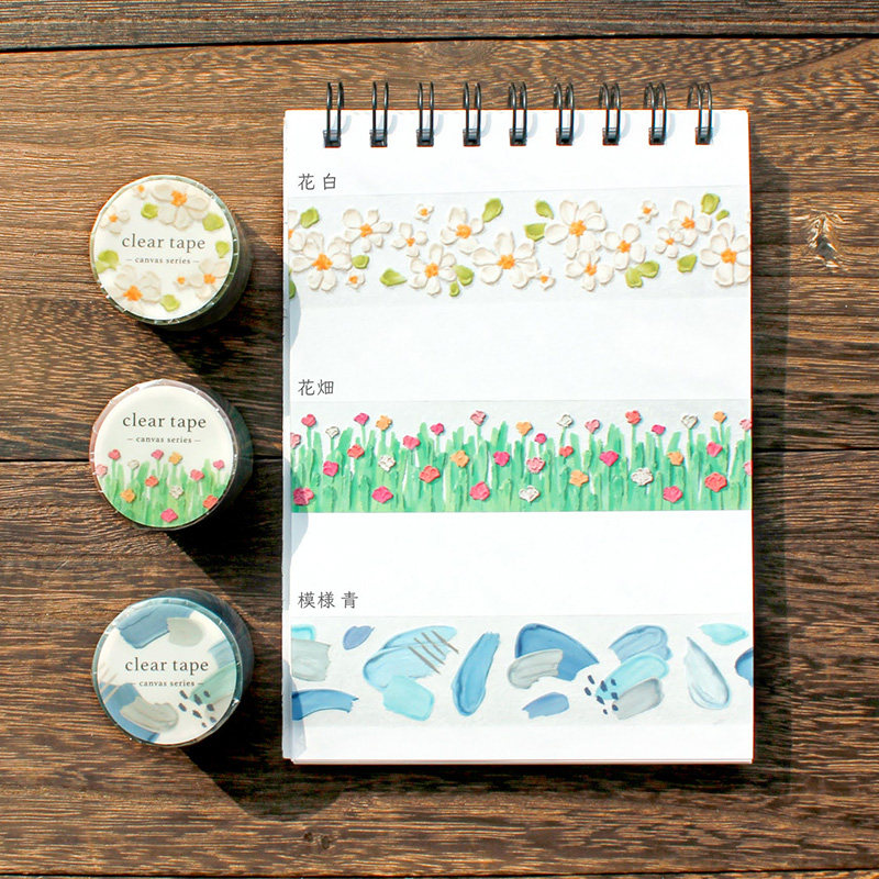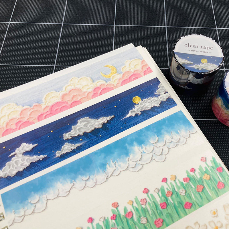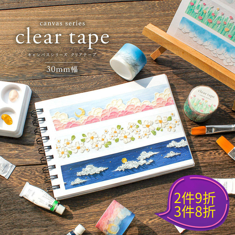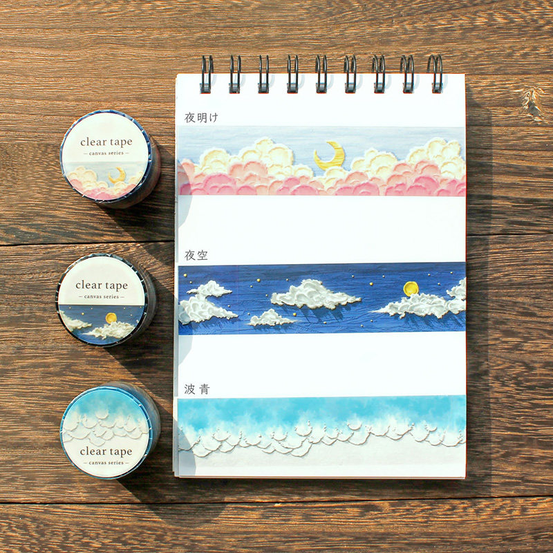 日本mind wave透明雾面PET胶带油画系列立体感油画棒图案黎明海浪夜空花田手帐日记相册咕卡防水装饰拉条