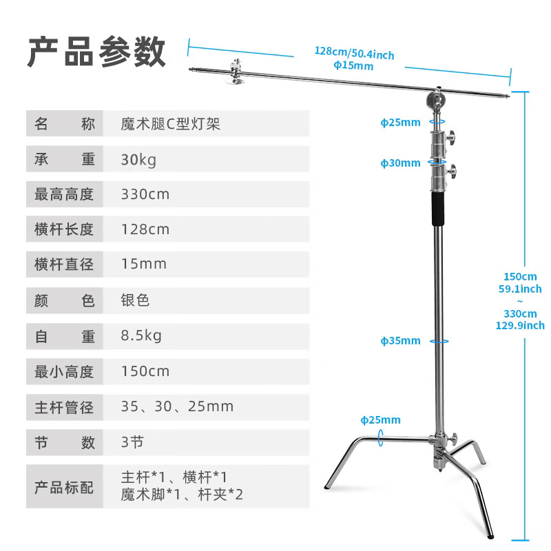 selens摄影魔术腿C型架灯架40寸不锈钢三脚架横杆横臂旗板支架闪光灯三角架影视影棚照明器材顶灯架摄影灯架