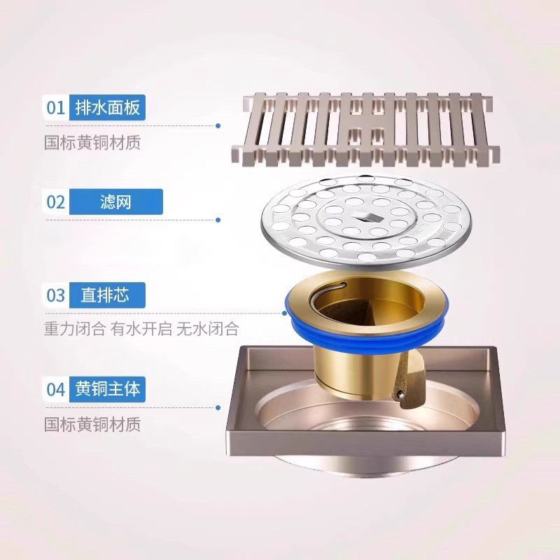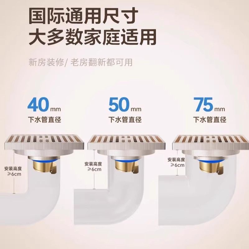 全铜防臭地漏奶油风卫生间下水道防堵神器淋浴房洗衣机厨房通用