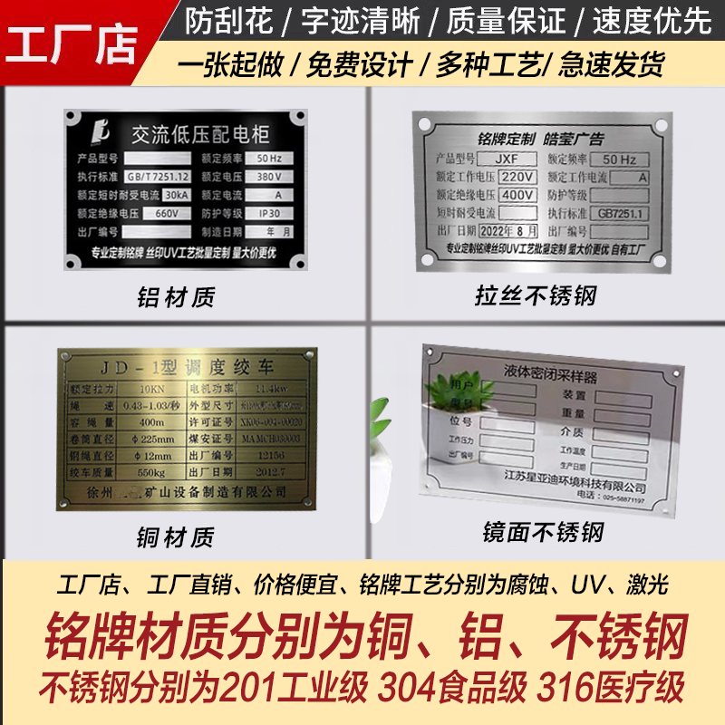 金属铭牌定制不锈钢腐蚀标牌定做电缆标识牌机器设备激光铝牌制作