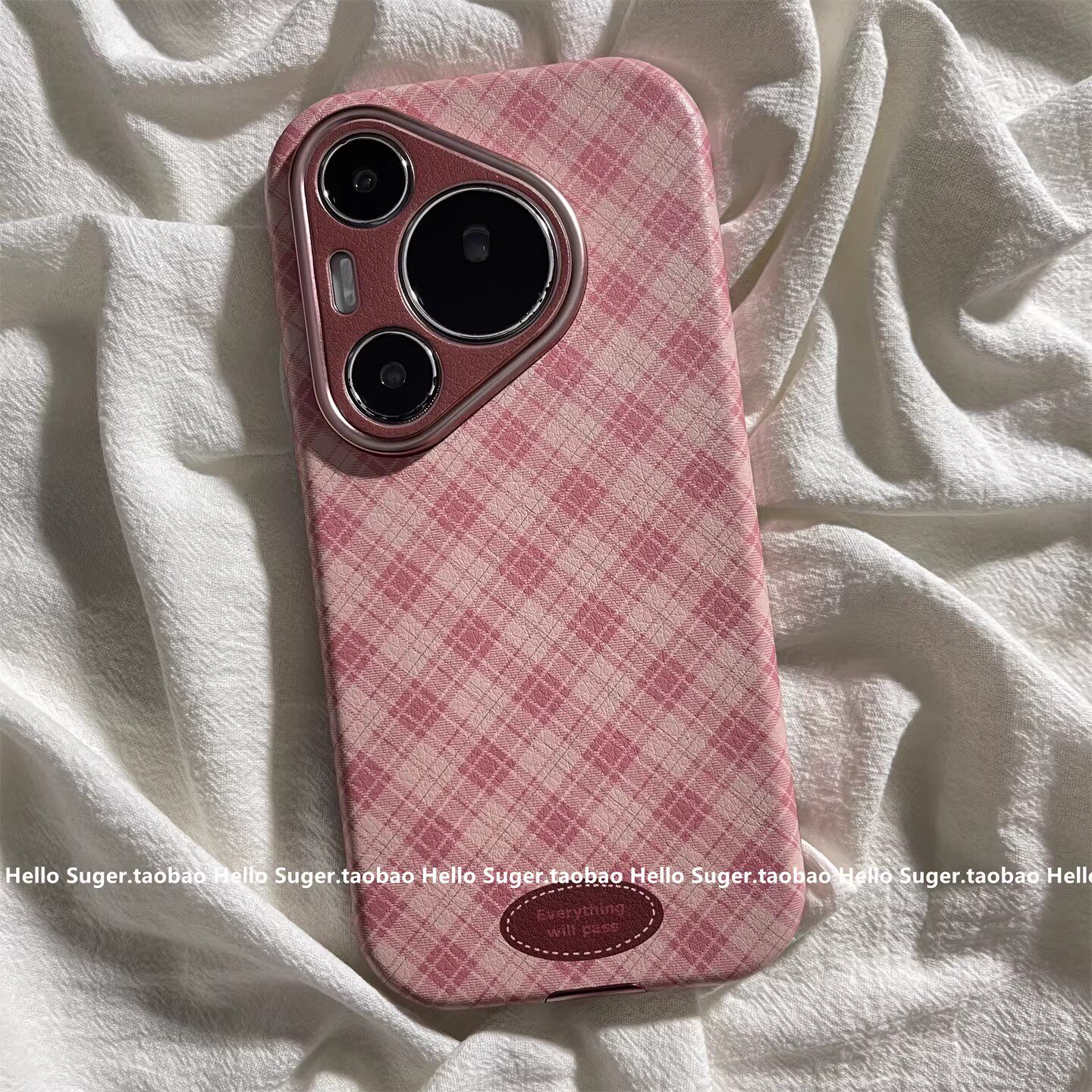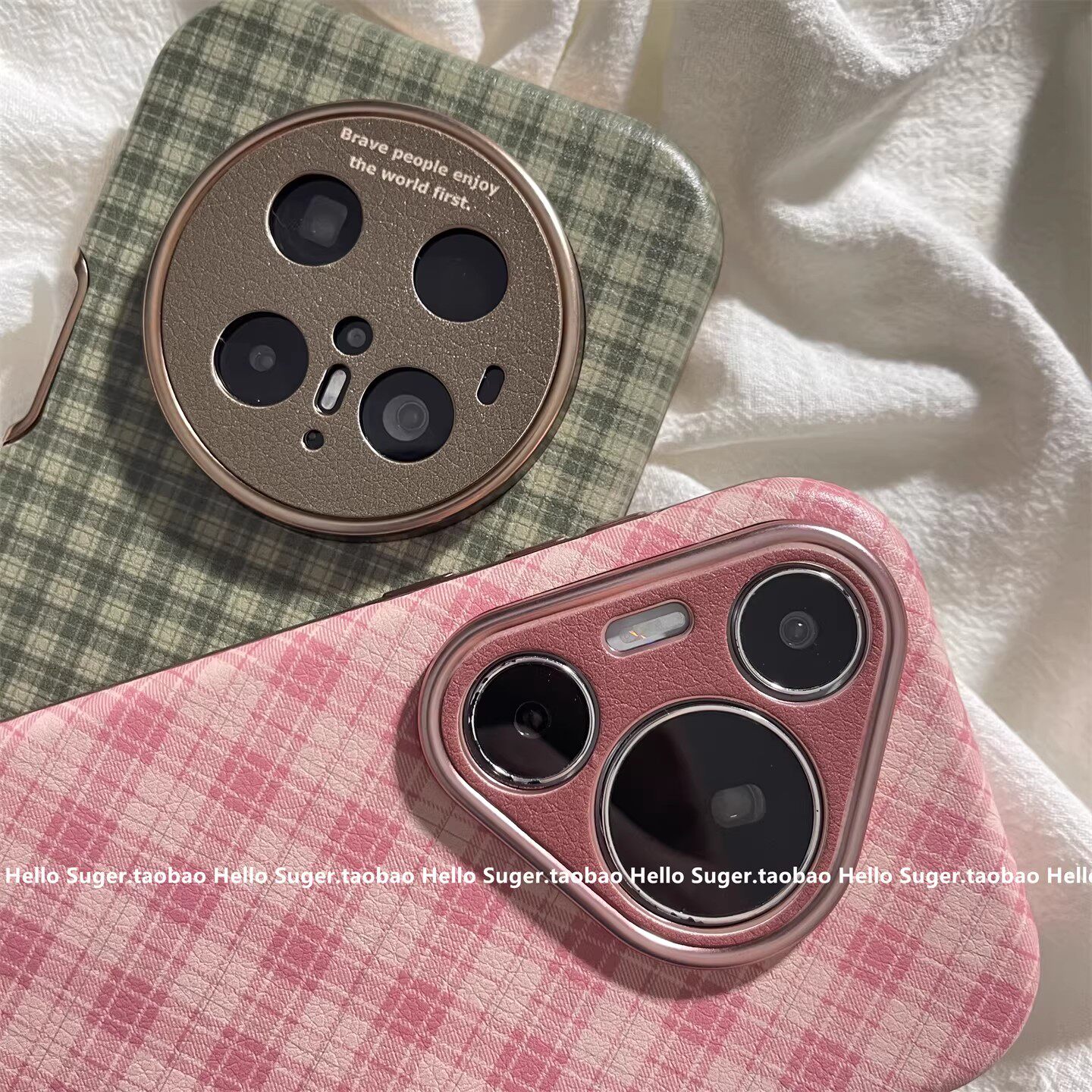 日韩ins简约粉绿格纹适用华为mate70pro+手机壳pura80pro大视窗mate60pro皮纹pura70pro保护套mate50pro女款