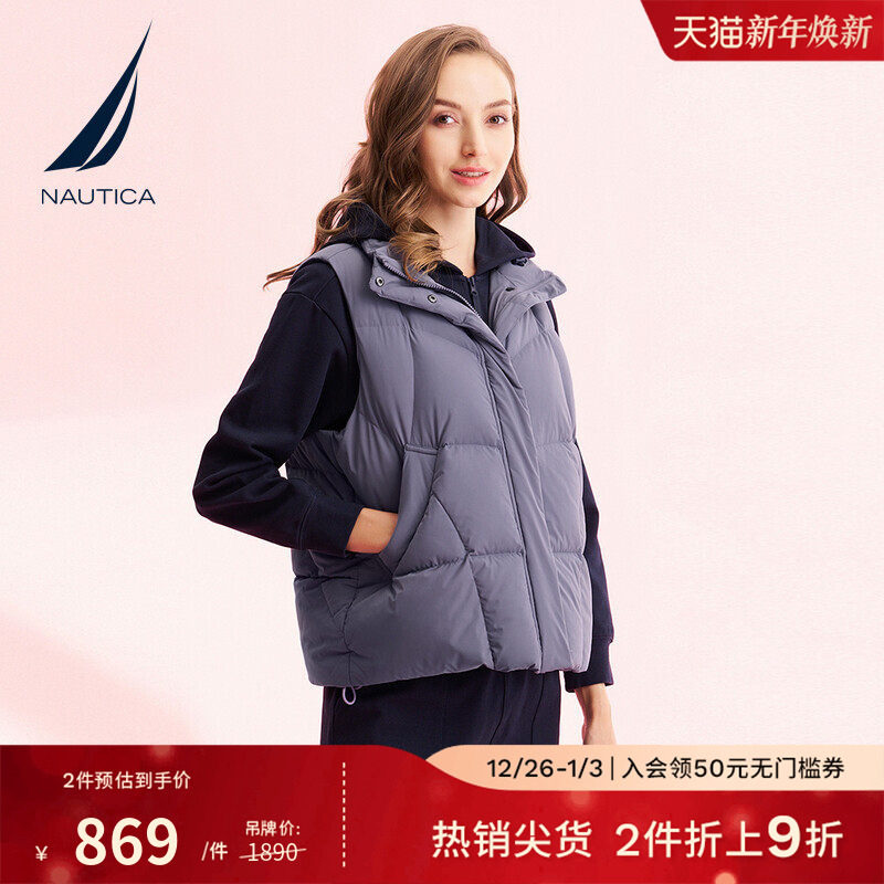 NAUTICA/诺帝卡女装秋冬防轻泼水90绒休闲保暖羽绒马甲43JO07