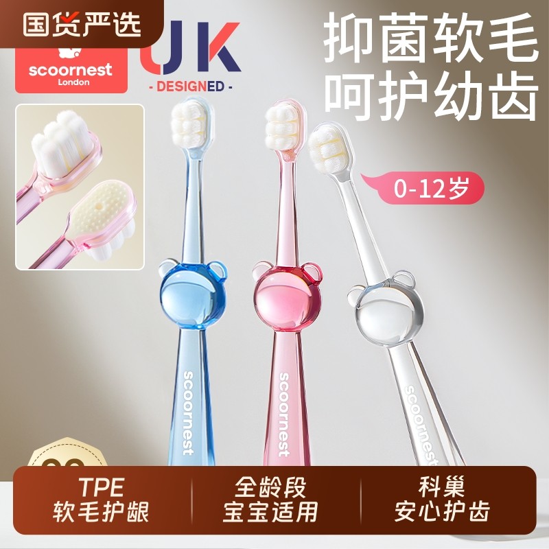 科巢儿童软毛牙刷宝宝0-1-3到6一12岁半以上牙膏婴儿婴幼儿乳牙刷