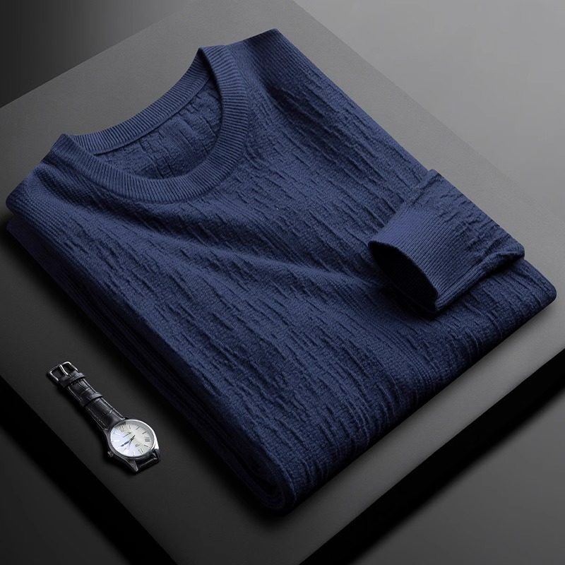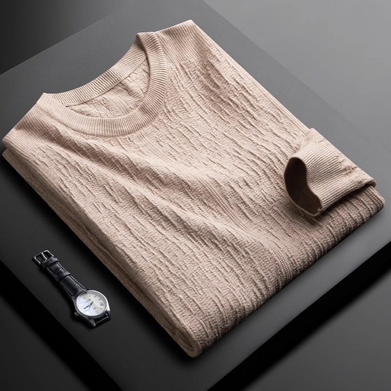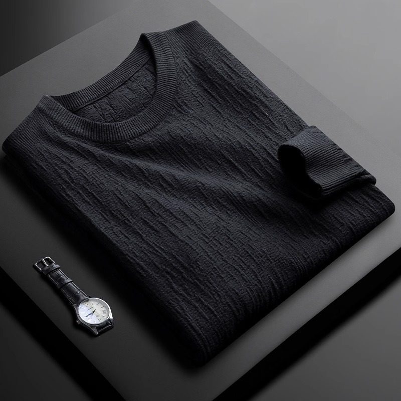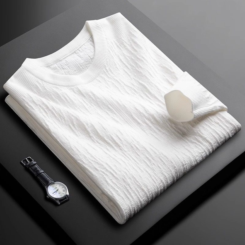 MK秋季轻奢高级感圆领男套头提花休闲百搭修身打底衫男士长袖T恤