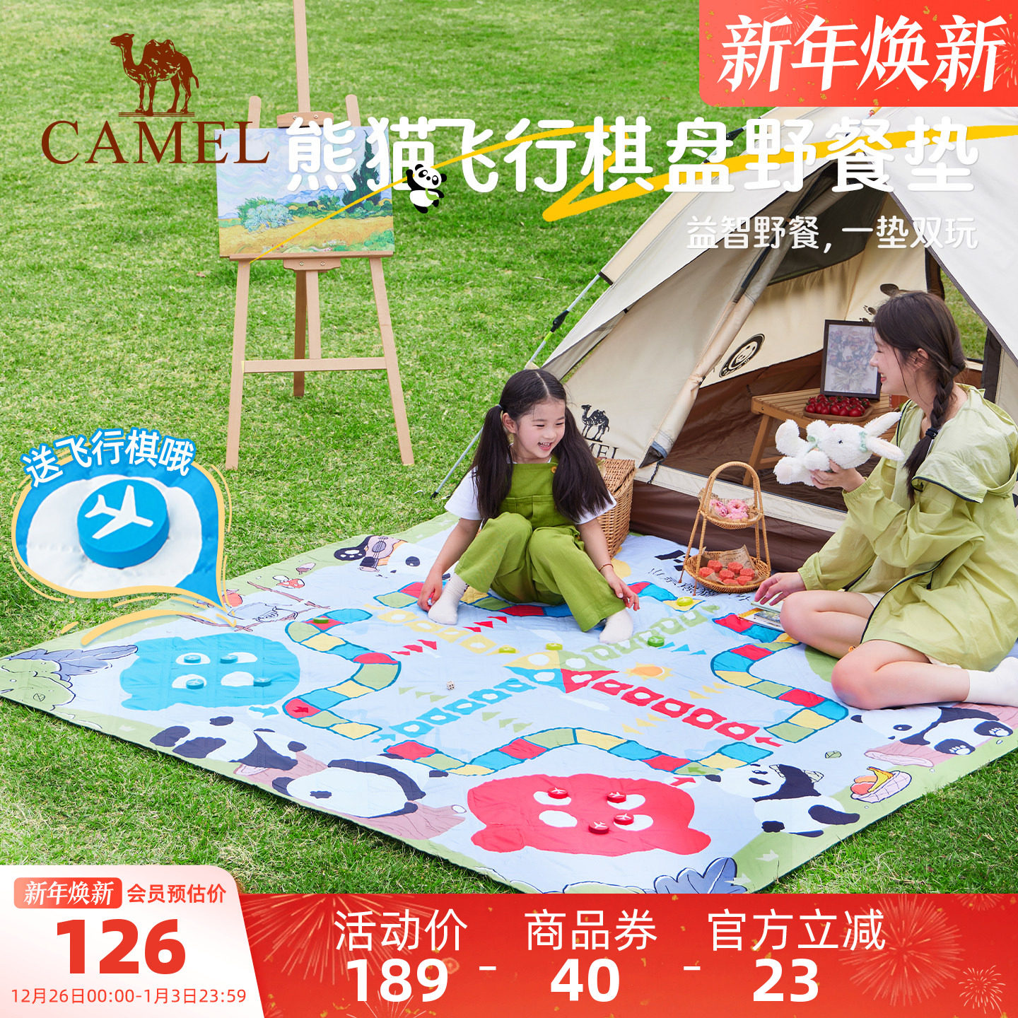骆驼熊猫野餐垫加厚户外露营帐篷地垫防潮垫飞行棋儿童春游垫子