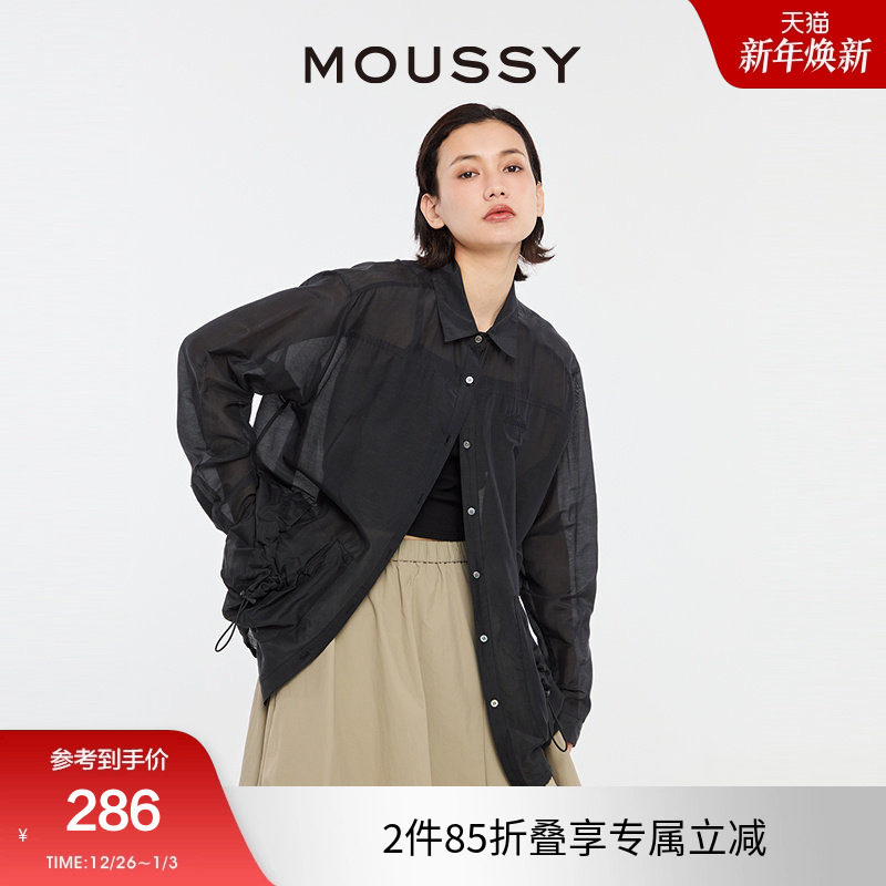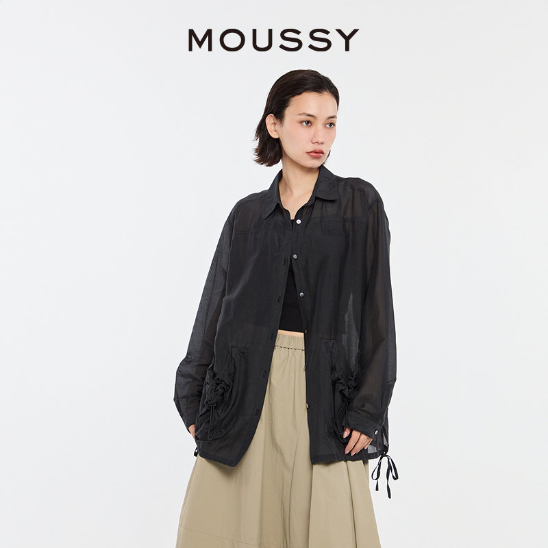 MOUSSY 慵懒风日系口袋宽松长袖衬衫女028HSZ30-0591
