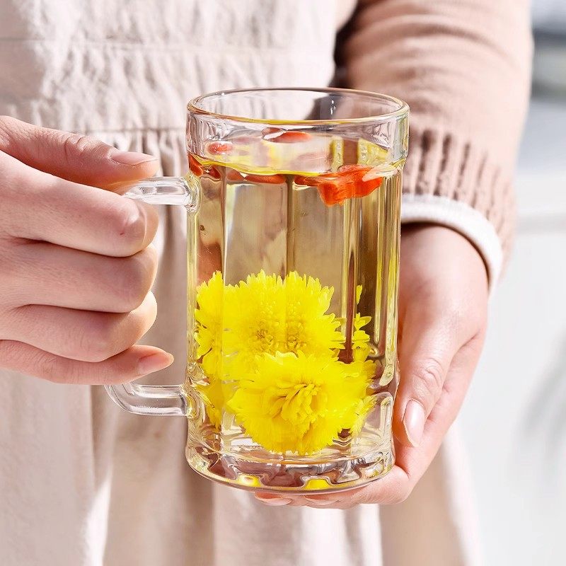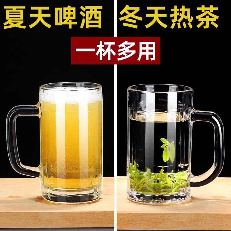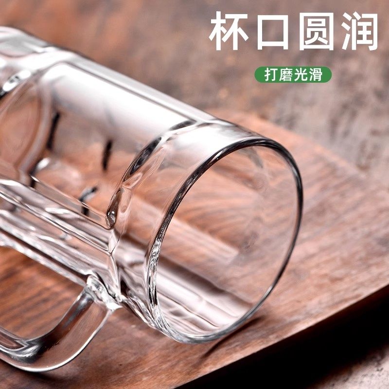 带把手玻璃杯家用杯子水杯套装啤酒杯喝水泡茶大容量带把茶杯单层
