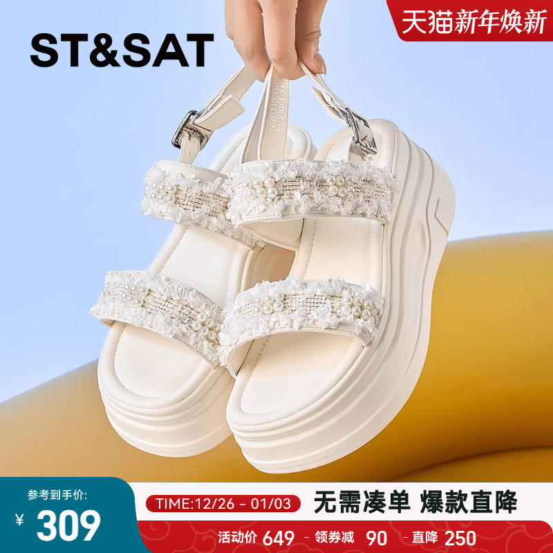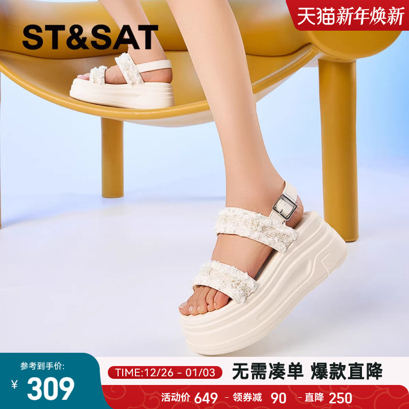星期六流苏珍珠凉鞋女款夏季外穿小香风厚底后绊带软底轻便沙滩鞋