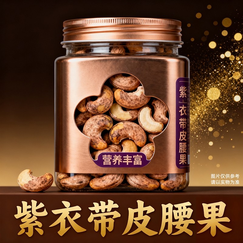 带皮腰果2025新货原味盐焗紫衣干果仁越南紫皮坚果批发官方旗舰店