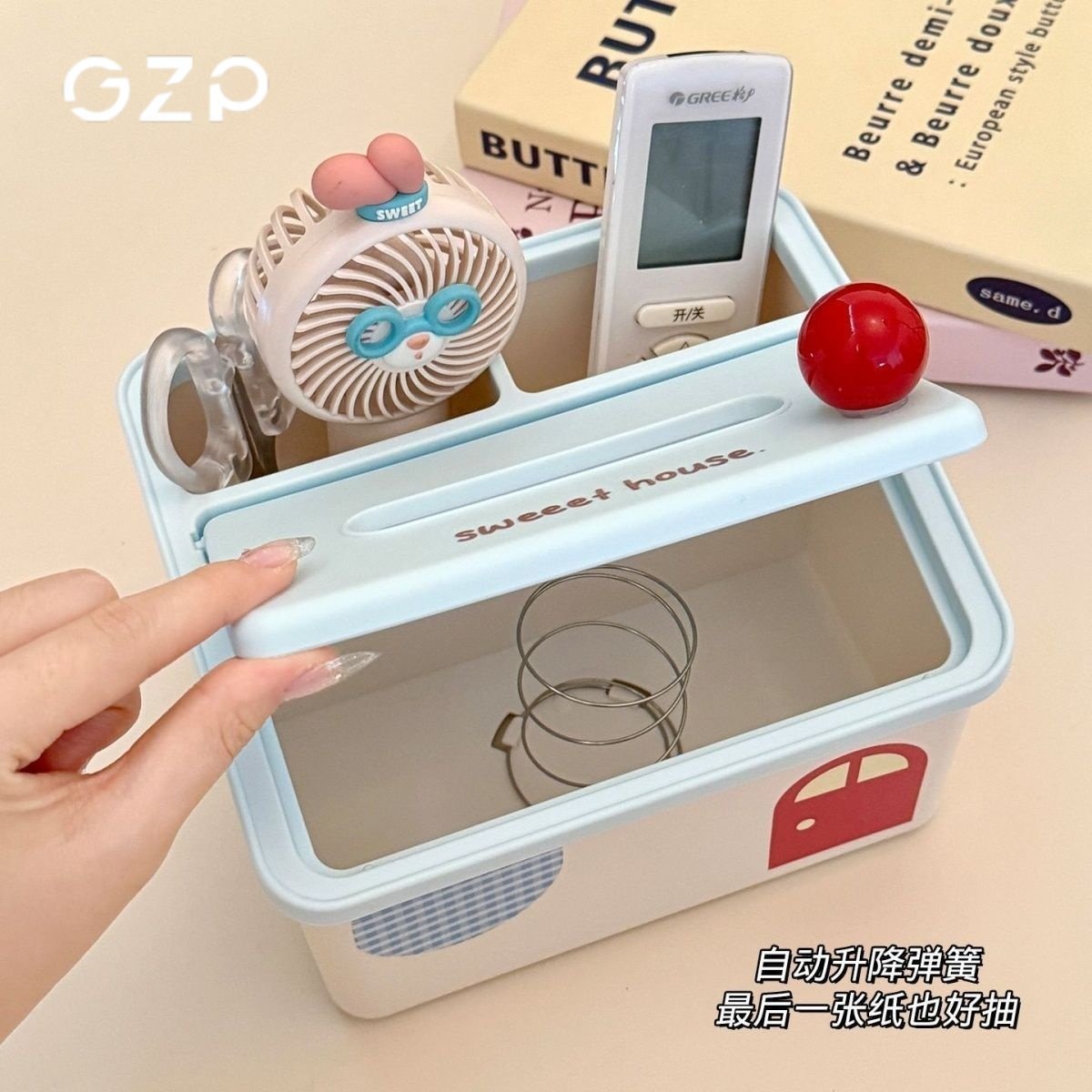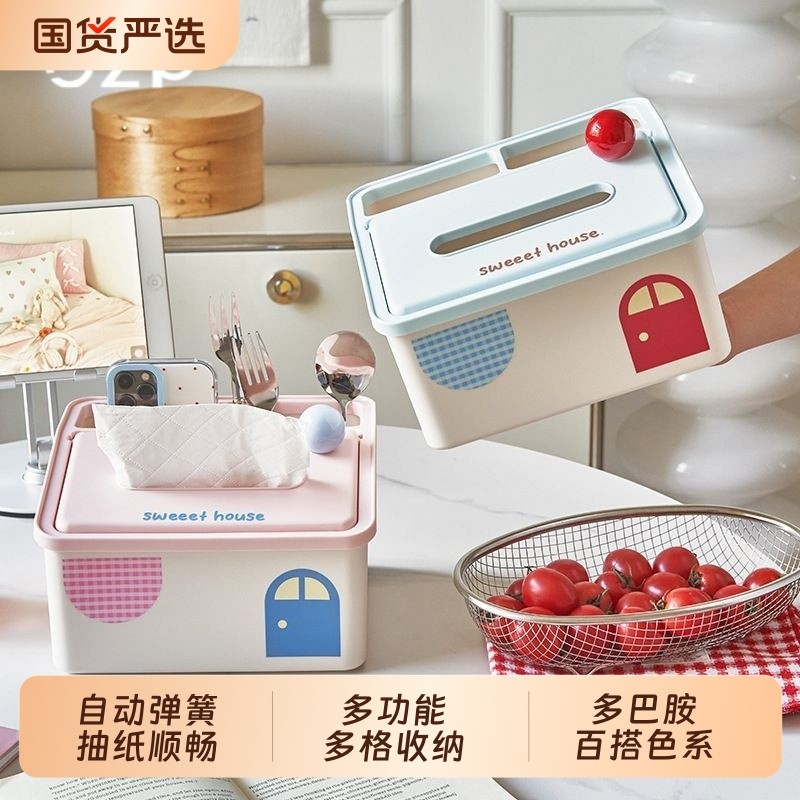 GZP纸巾盒客厅可爱抽纸盒茶几摆件餐桌纸巾遥控器收纳盒桌面弹簧