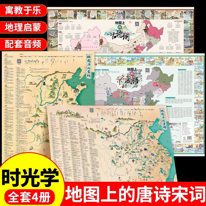 时光学地图上的唐诗宋词中国地理历史国学启蒙儿童彩绘音频挂图全景古诗词成语漫画启蒙书全套正版诗词三百首W趣味初中