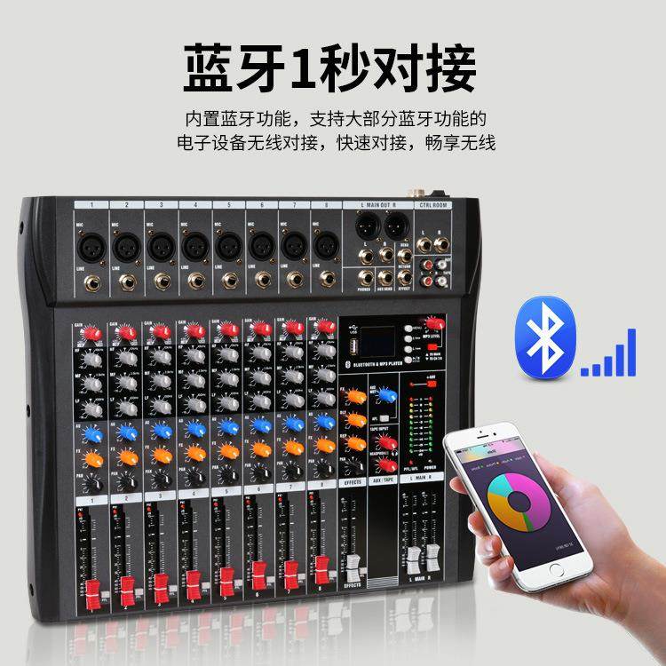 专业调音台8路舞台演出会议小型便携幻象电源USB蓝牙8路调音台