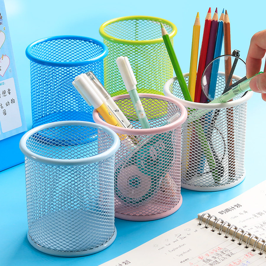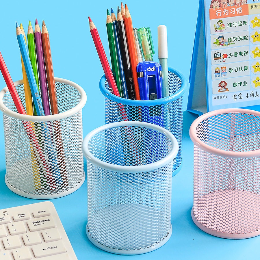 得力黑色金属铁笔筒创意可爱大容量学生时尚网状个性简约韩国小清新文具用品桌面粉色少女心INS北欧铁艺男孩