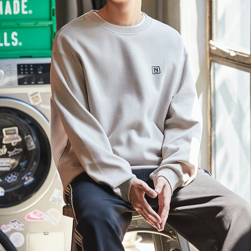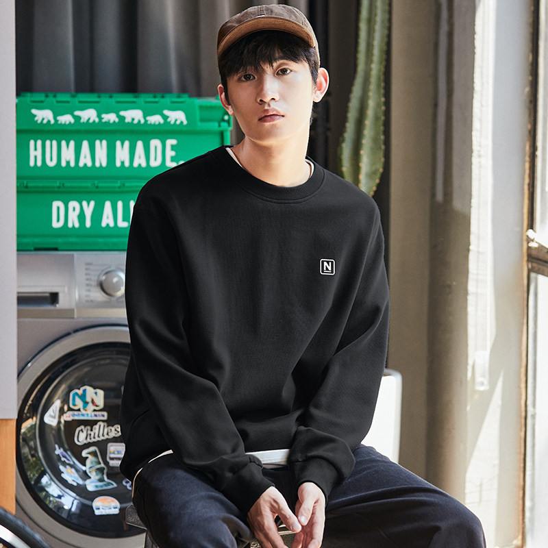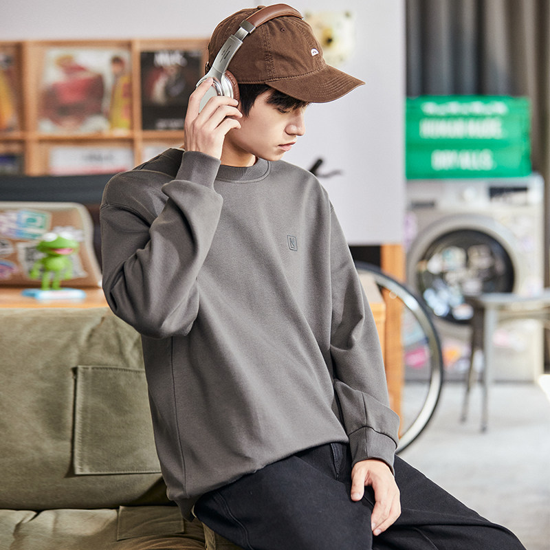 班尼路重磅卫衣男款秋季基础纯色圆领内搭男款宽松大码正肩套头衫