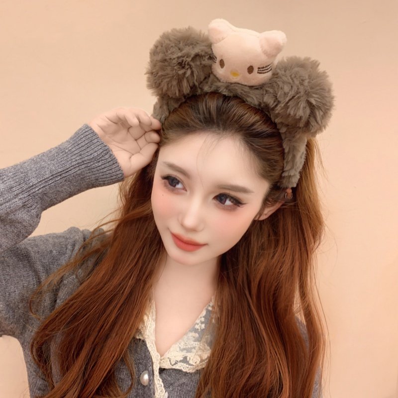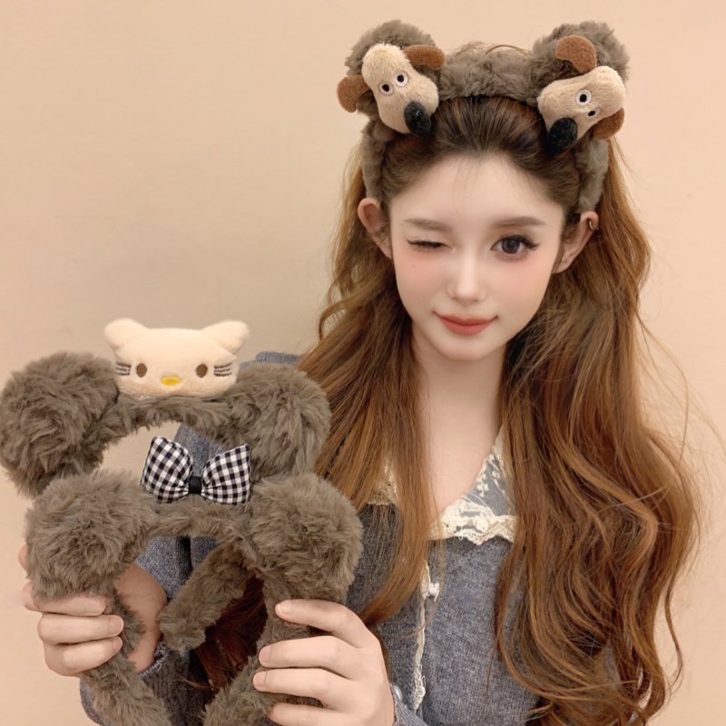 可爱卡通掌门狗毛绒发箍女2025新款毛茸茸kt猫发卡熊耳朵头箍头饰