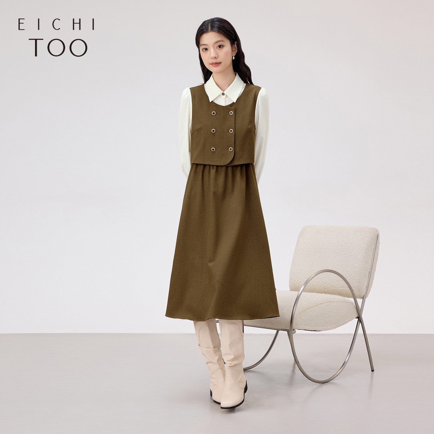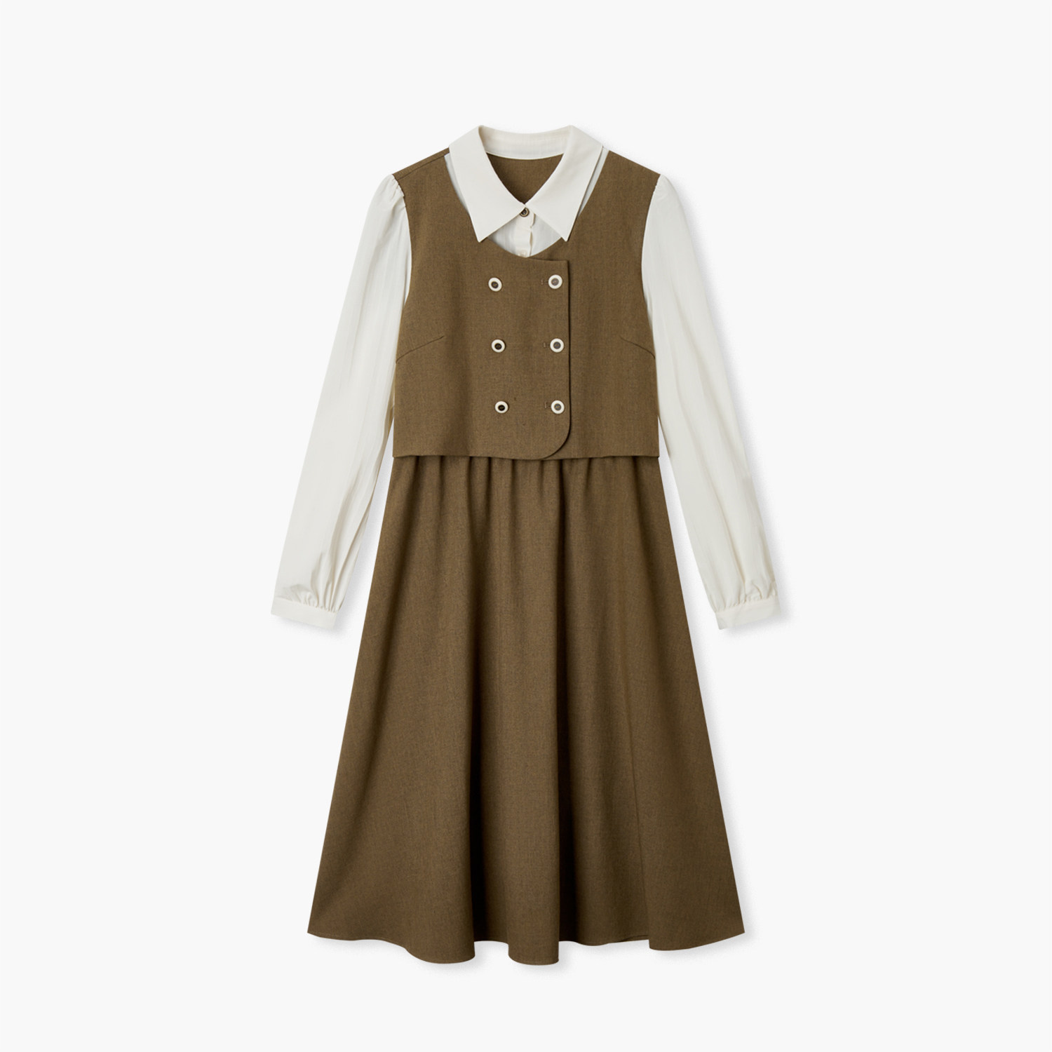 爱居兔通勤风连衣裙女春秋新款时尚假两件长袖A字裙