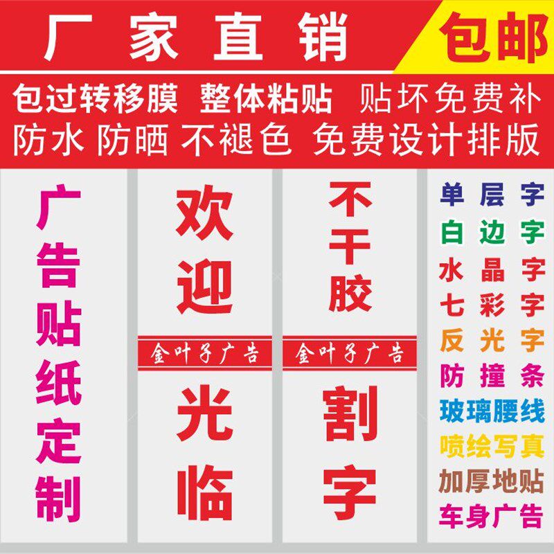 广告字定制玻璃贴纸腰线防撞条橱窗电脑刻字割P不干胶即时贴水晶
