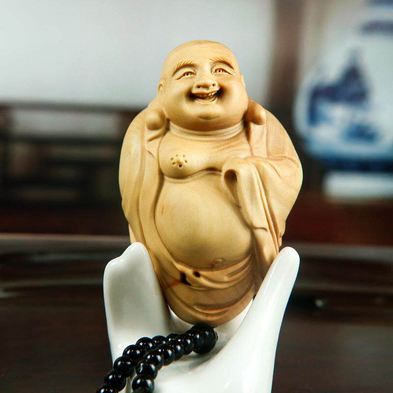 黄杨木雕刻大肚弥勒文玩手把件工艺品汽车中式客厅挂件笑佛