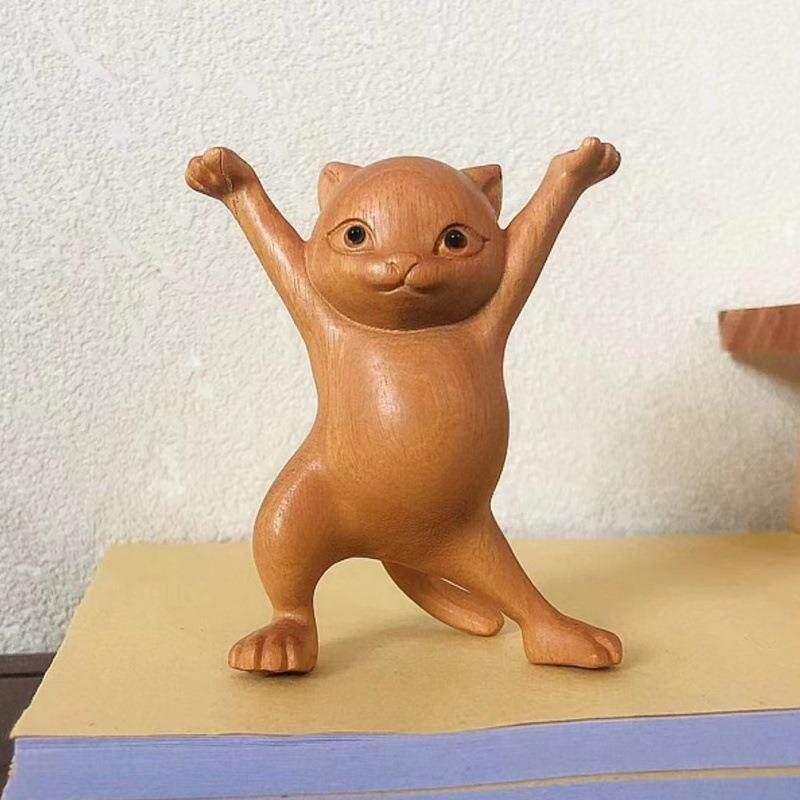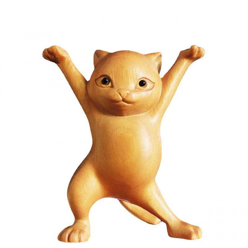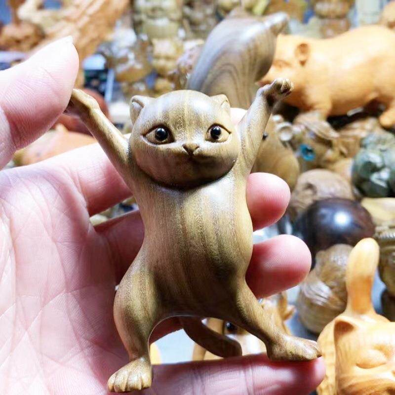 绿檀木雕妖娆猫桌面办公笔架 家居装饰工艺品实木妖娆猫文玩摆件