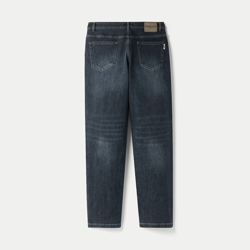 吉普专柜秋冬季新款复古牛仔裤男宽松直筒大码加绒加厚水洗长裤子