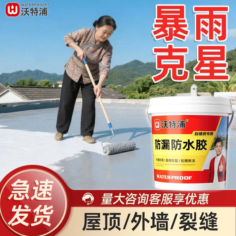 沃特浦屋顶防水涂料楼顶室外高弹补漏材料房顶裂缝漏水专用防漏胶
