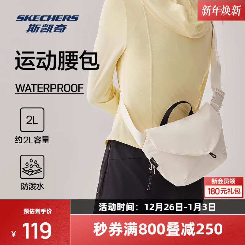 斯凯奇2025年新品男女款简约腰包休闲运动风瑜伽健身收纳包