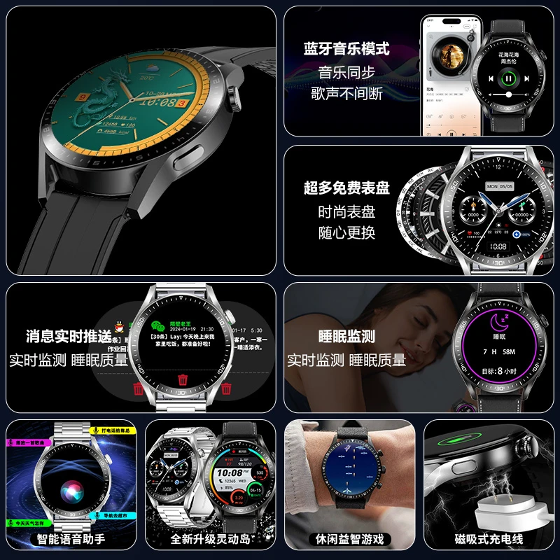 VRST高精度血糖测血压风险评估无创智能手表全天动态心率血氧心电健康睡眠监测量仪尿酸运动蓝牙通话手环老人