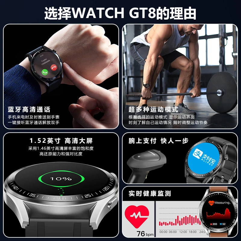 正品适用Huawei华为鸿蒙手机新款GT8多功能智能手环蓝牙通话支付NFC门禁太空人男时尚支付