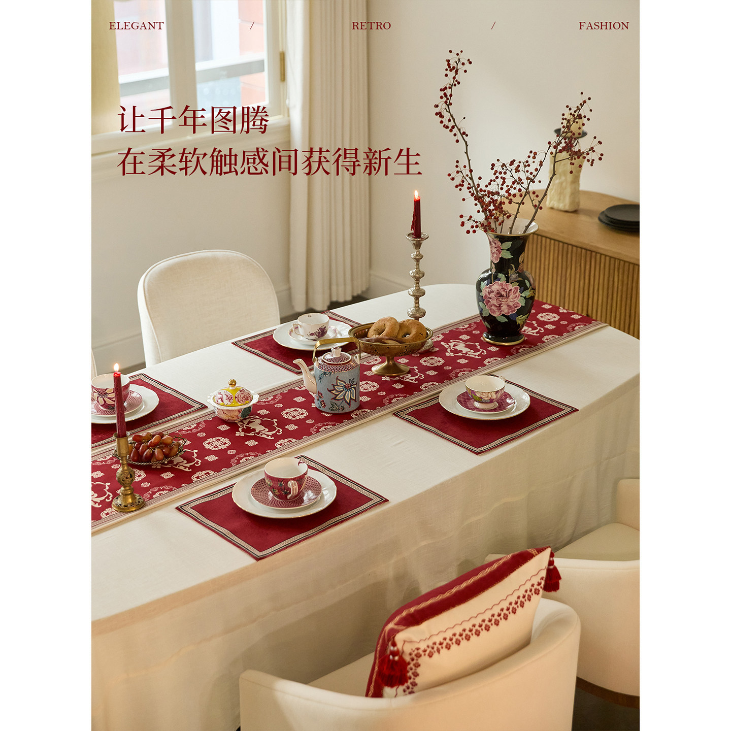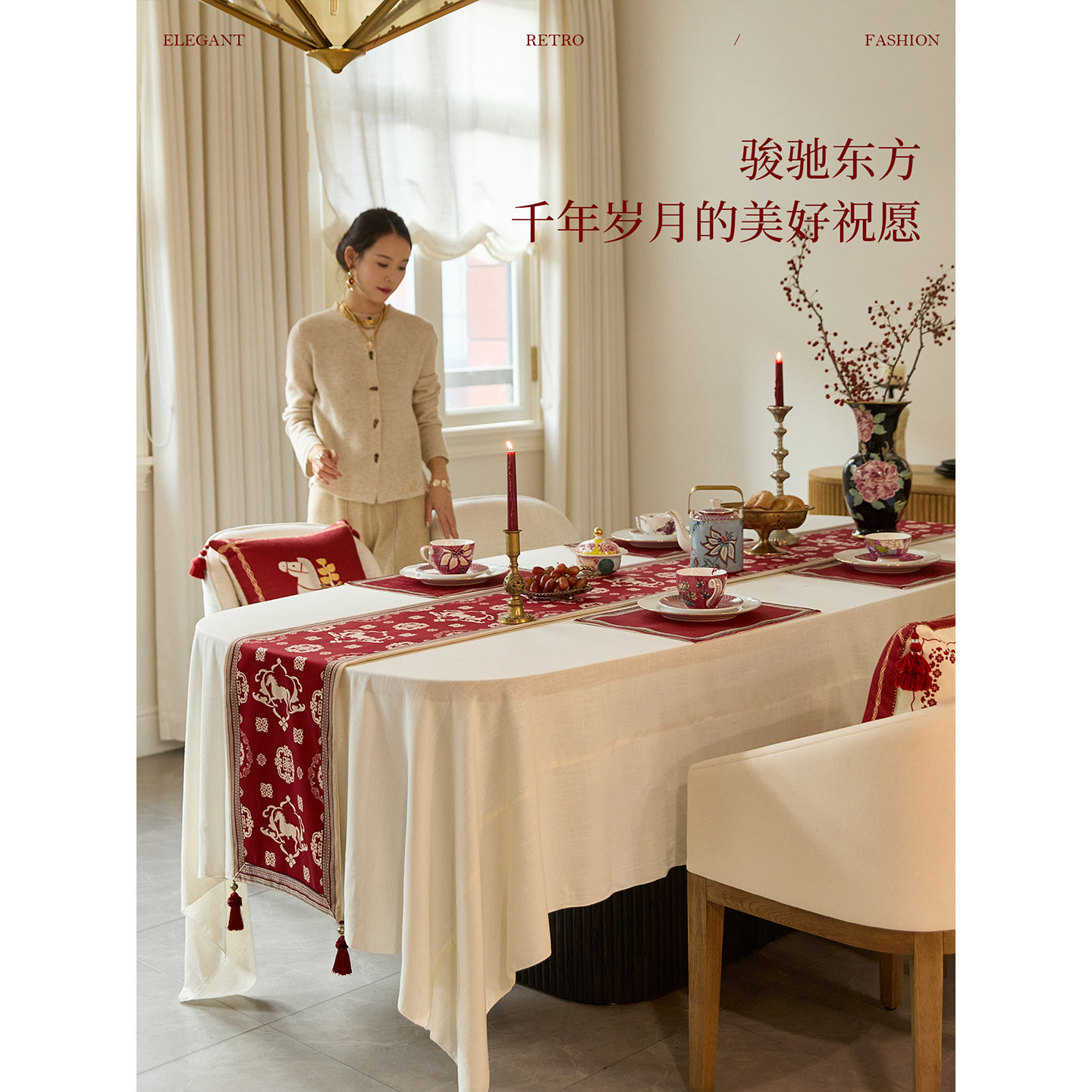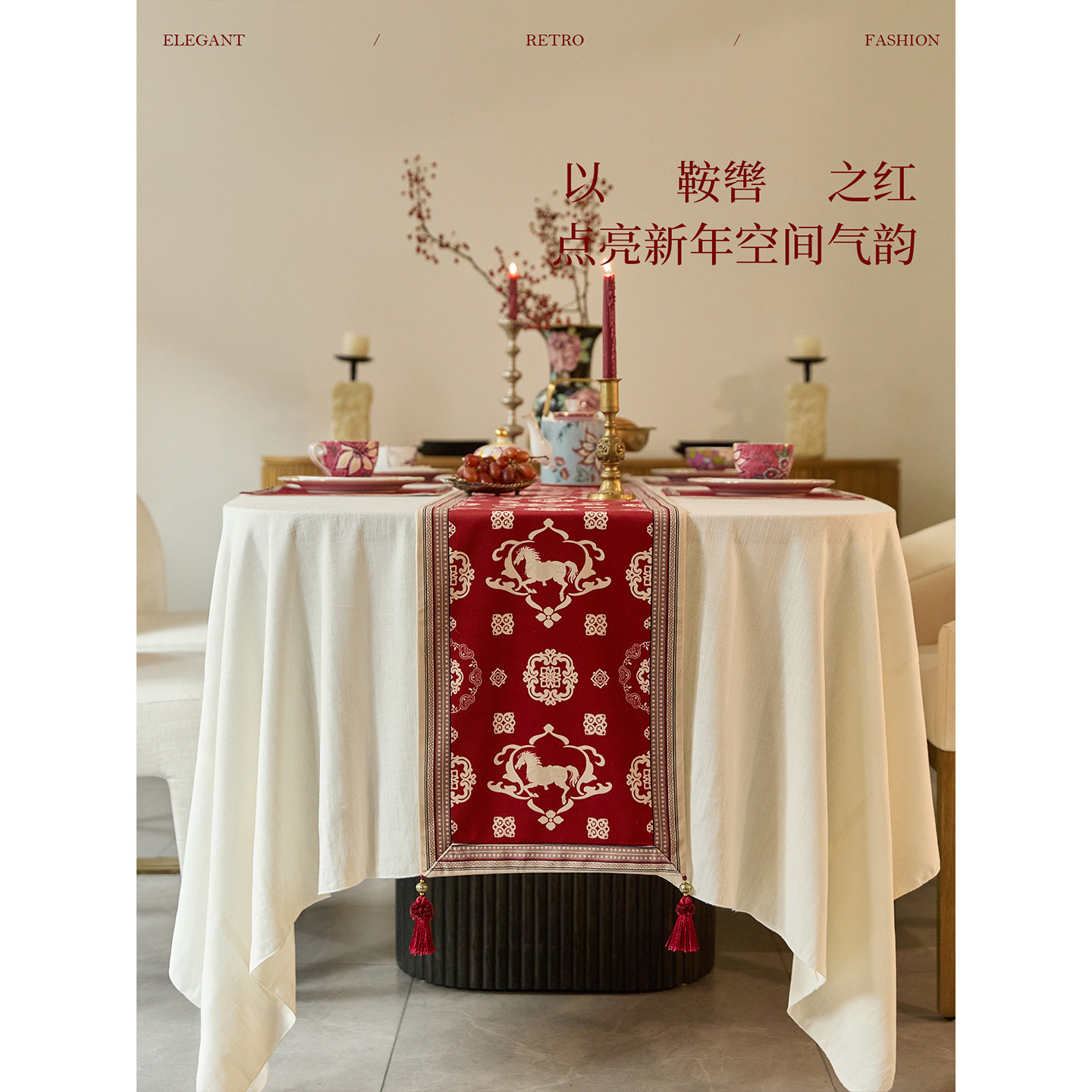 蜡笔派「马上有福」骏程如意桌旗现代轻奢新年红色喜庆茶几盖布